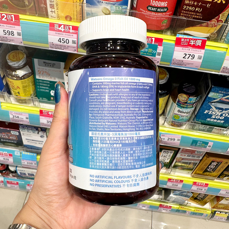 📚 香港屈臣氏奥米加3深海鱼油软胶囊1000毫克EPA DHA心脑血管200粒