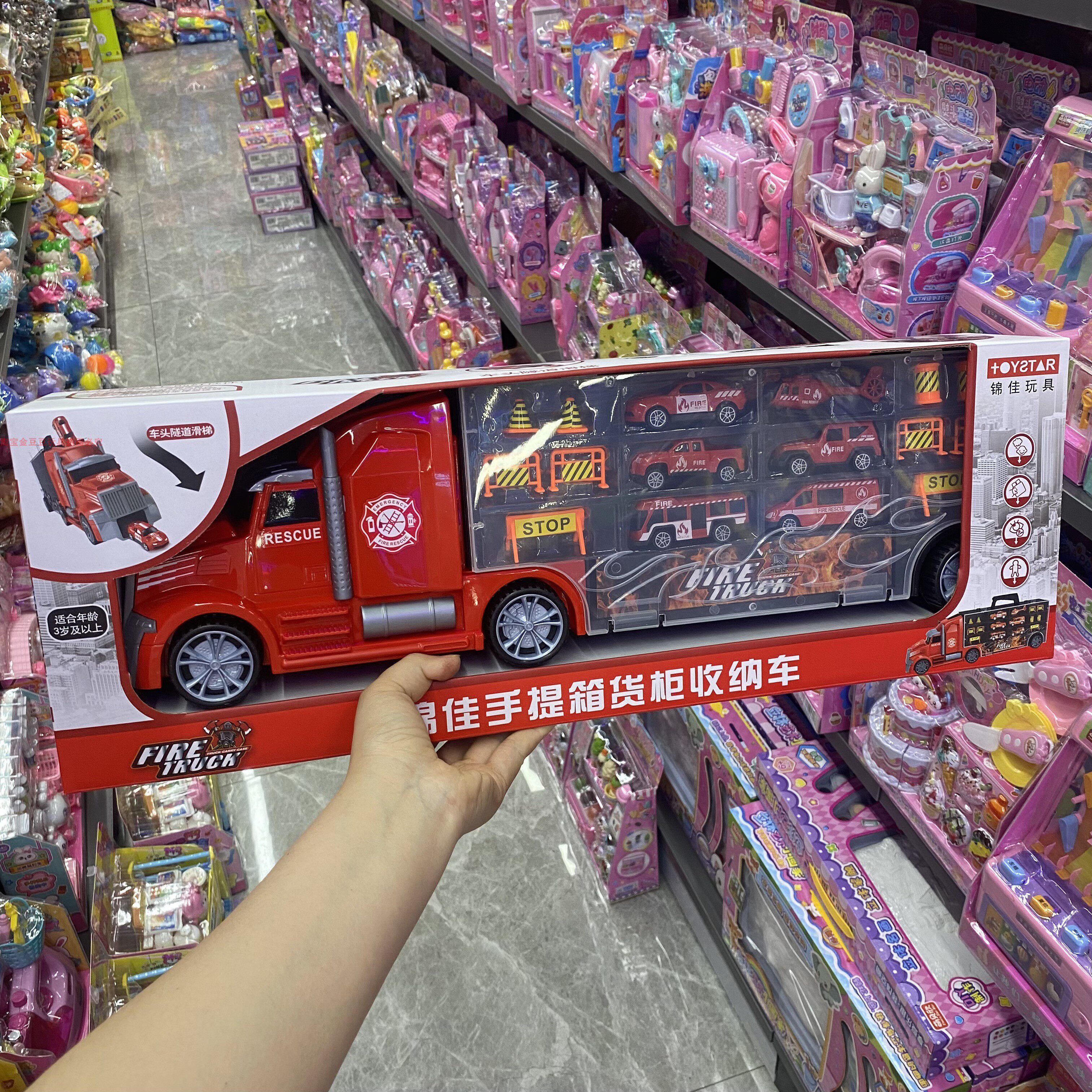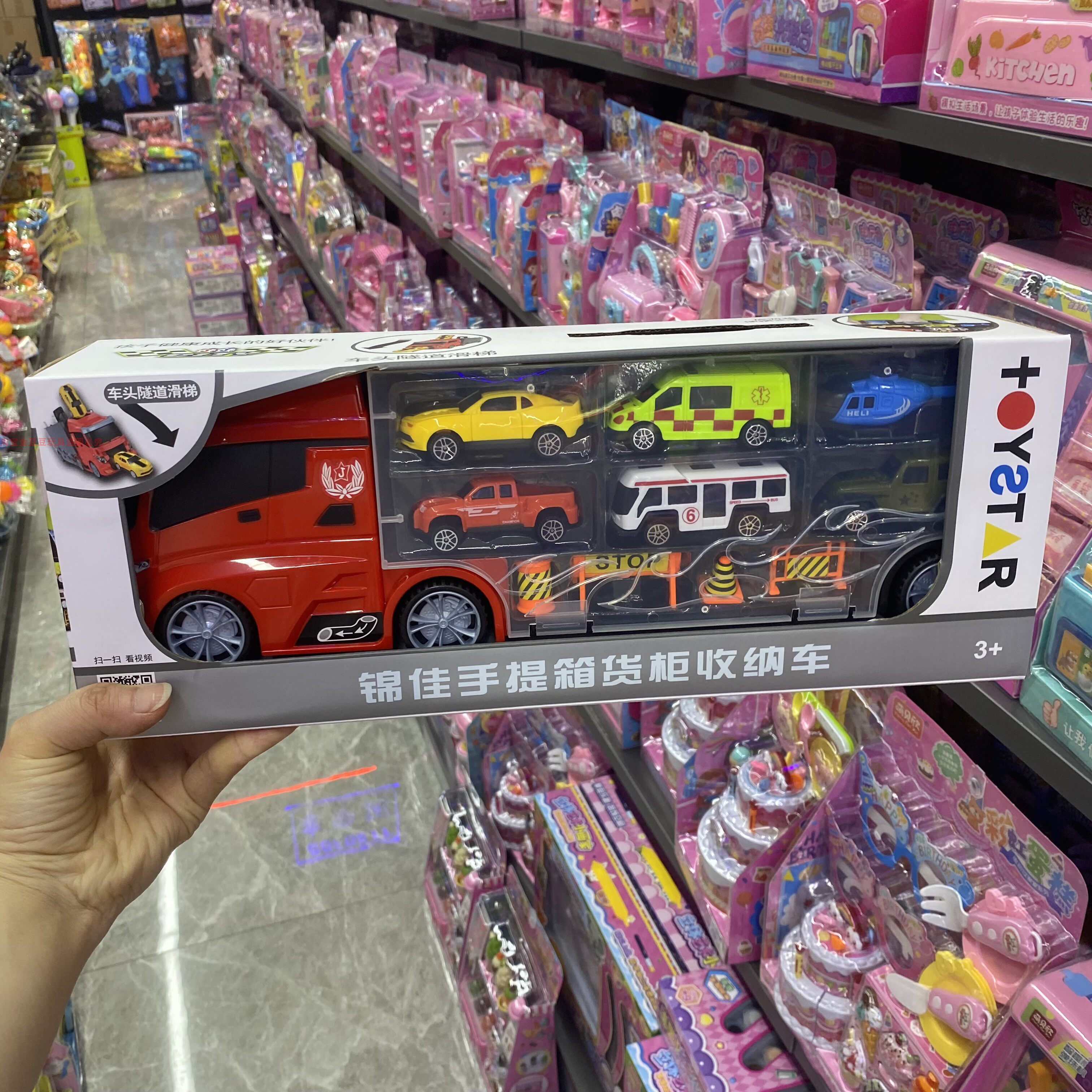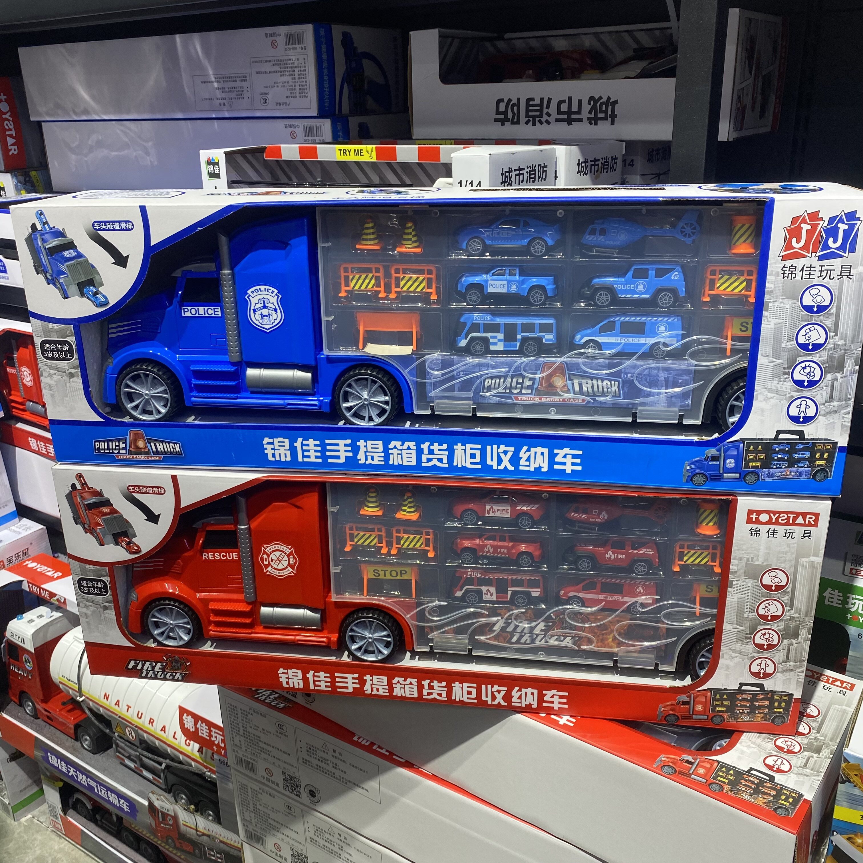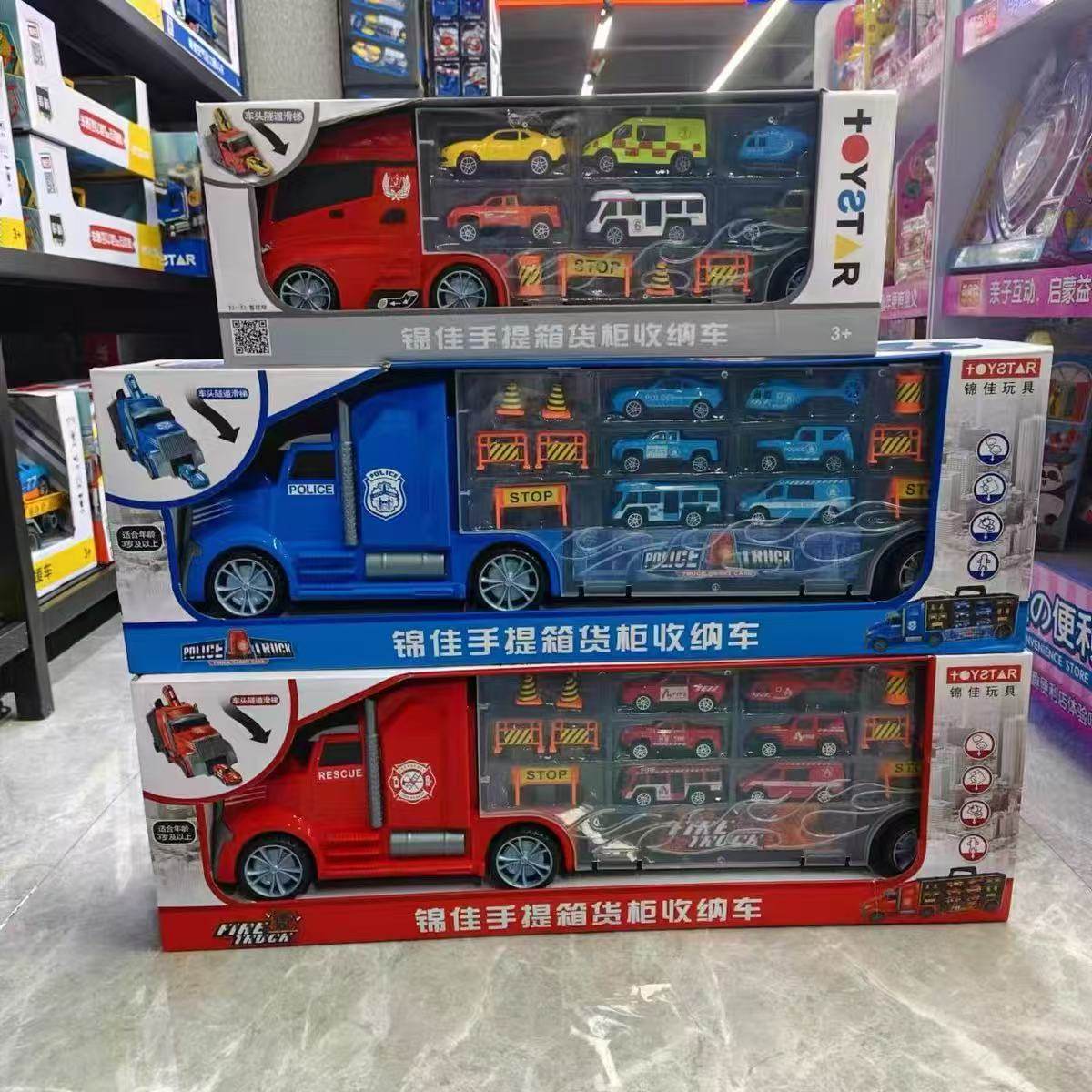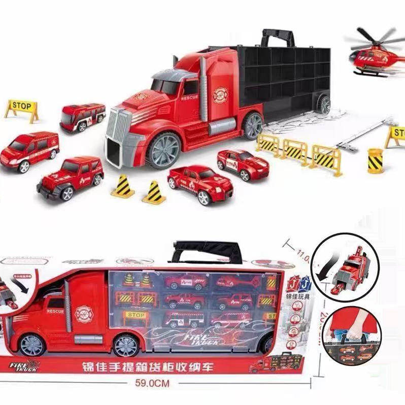 📚 新款锦佳提手收纳车货柜塑料小汽车运输车路障警车消防车手提箱