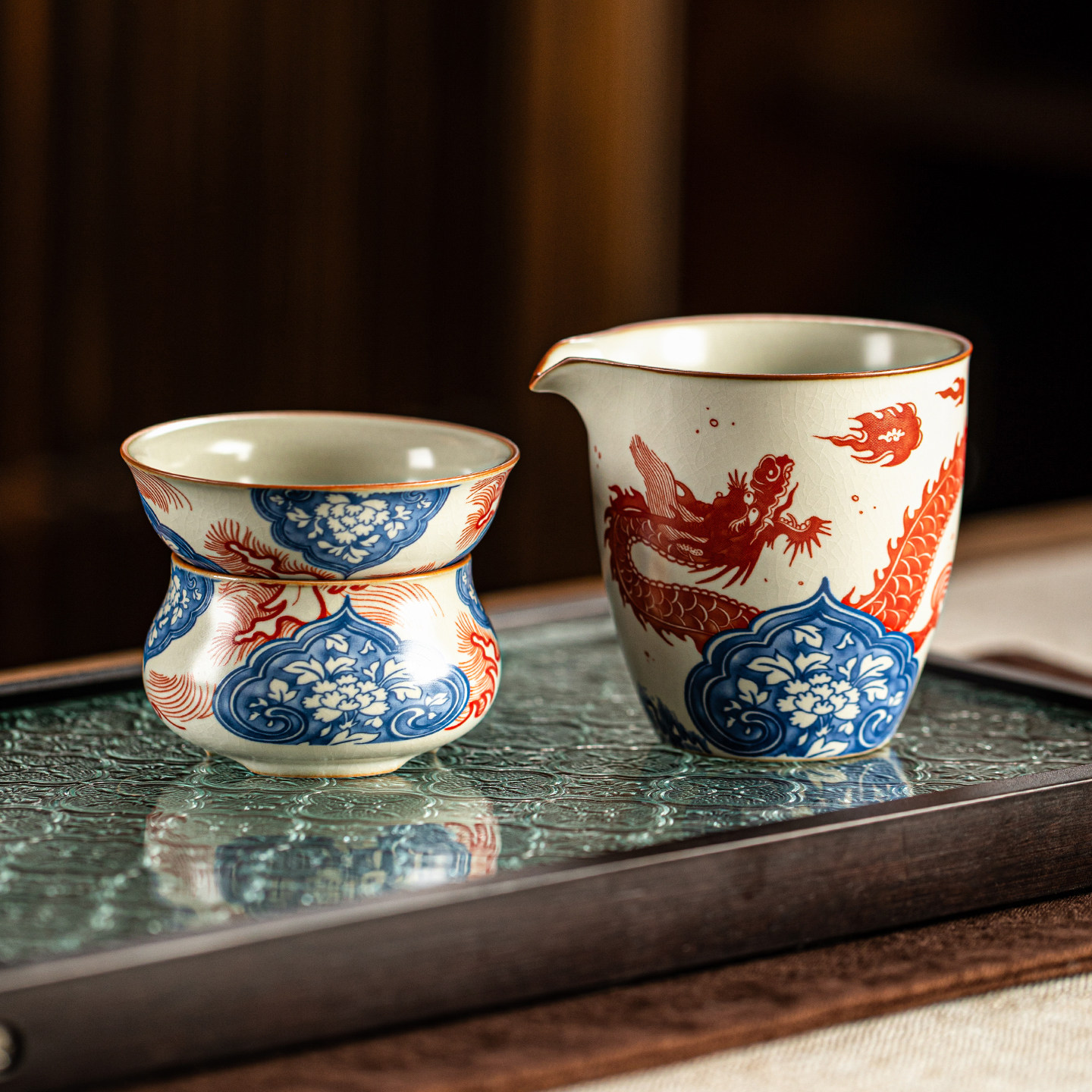 📚 瓷牌茗汝窑公道杯茶漏组合高档家用办公分茶器陶瓷茶叶茶渣过滤器