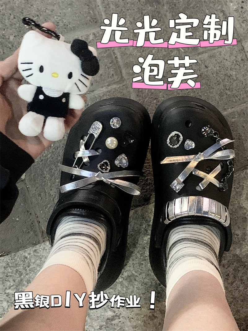📚 光光定制高端水钻皮革丝带鞋花高级黑色洞洞鞋配饰小红书同款鞋扣
