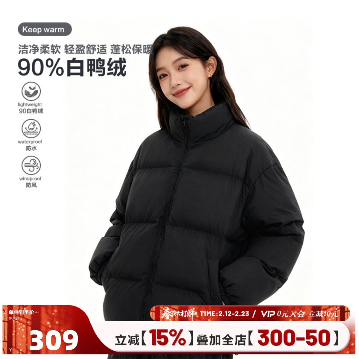 📚 404MOB高充绒171g特氟龙双拉链三防90白鸭绒轻便羽绒服立领面包服
