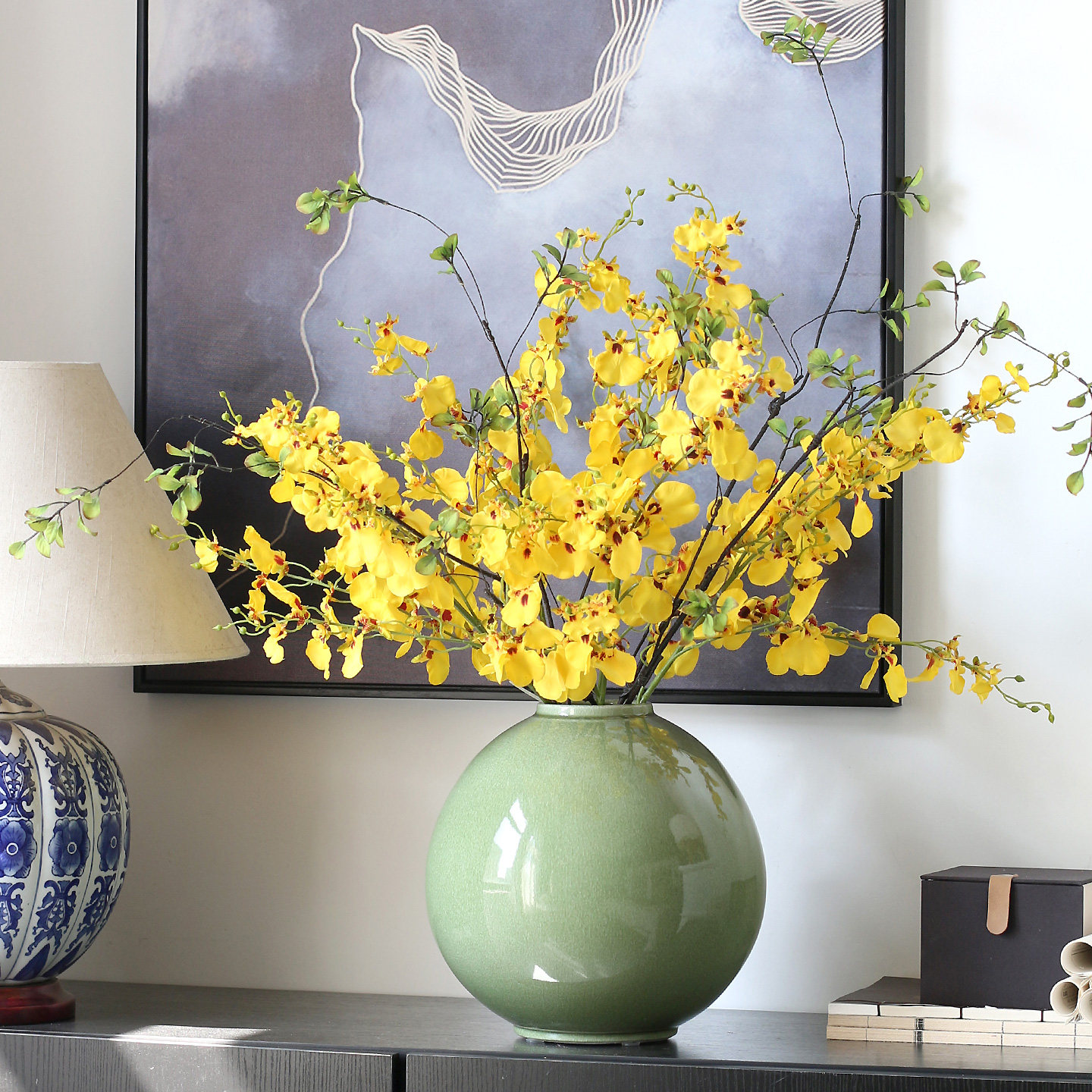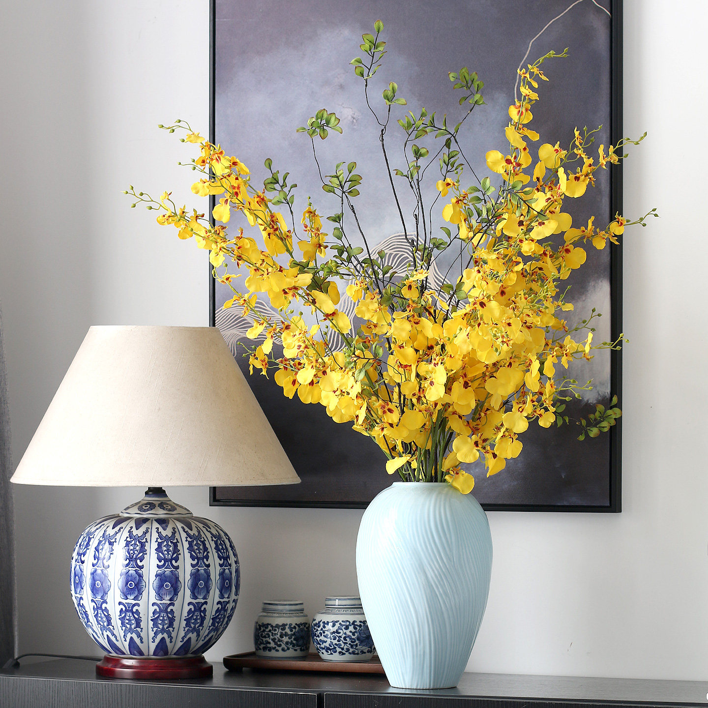 📚 明媚黄色跳舞兰假花插花仿真花花束高级感客厅逼真装饰摆设花艺