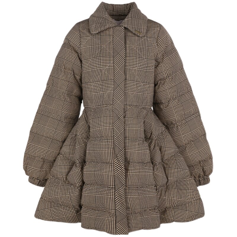 📚 公主泡芙棉服 棕底千鸟格印花 中长款外套Selkie Collection