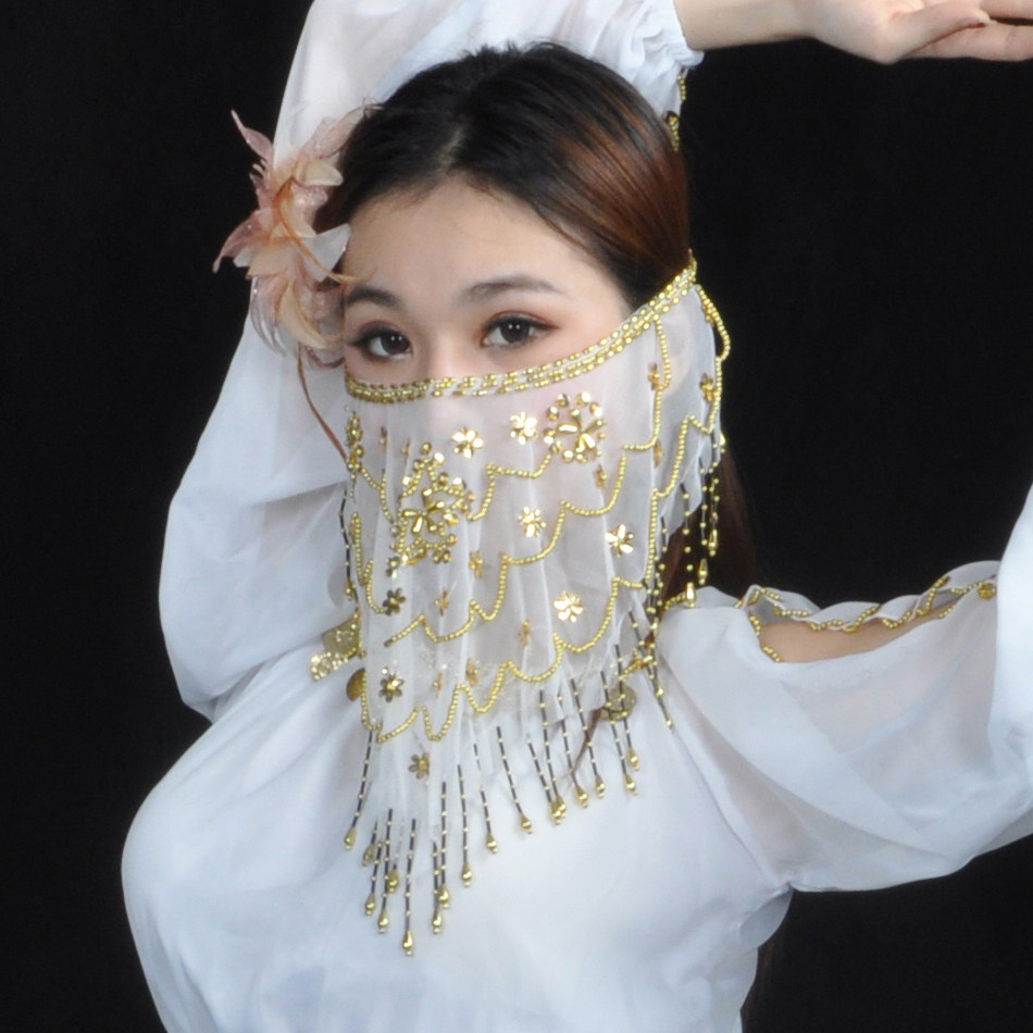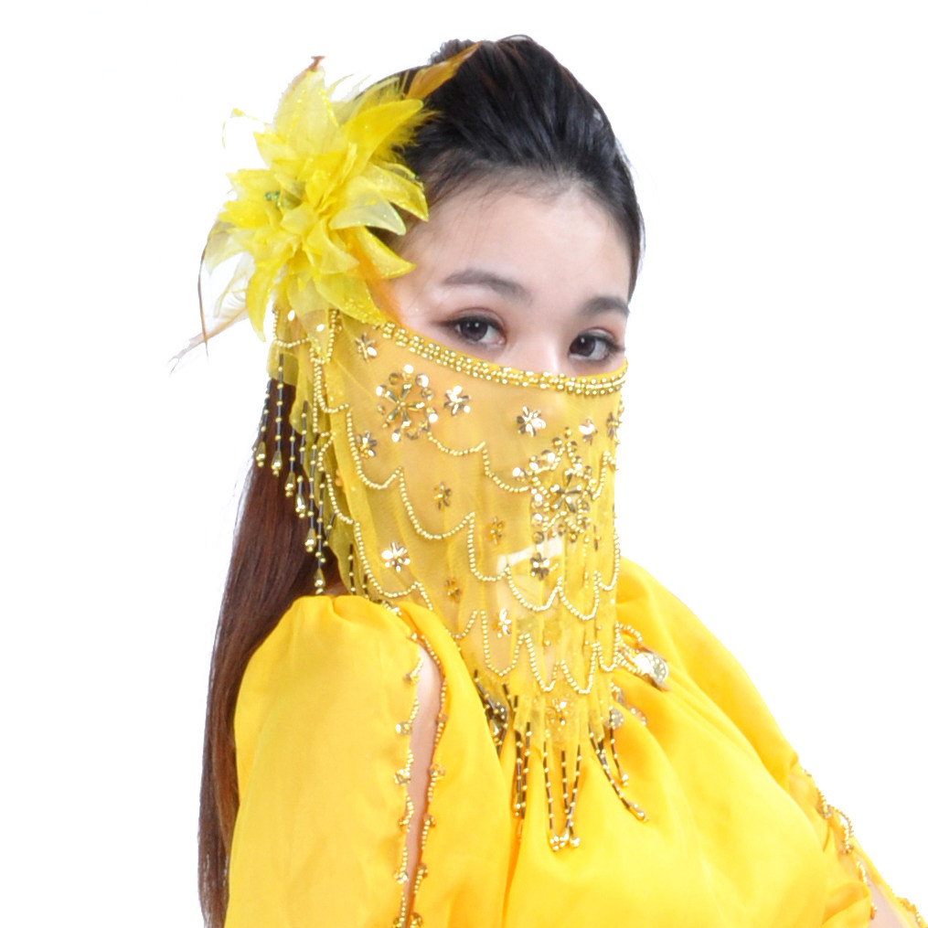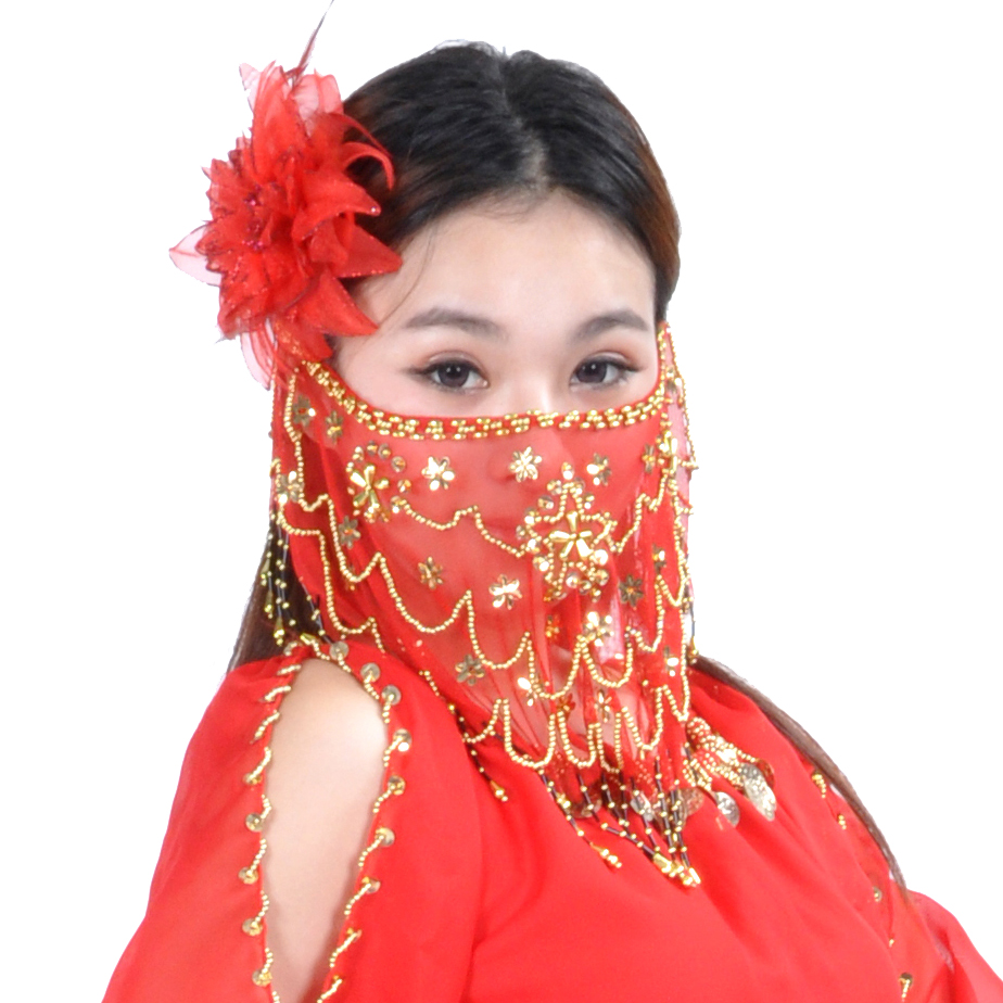 📚 舞娘 梅花片面纱 肚皮舞头饰面饰 印度舞头纱 新疆舞遮脸面纱纱丽