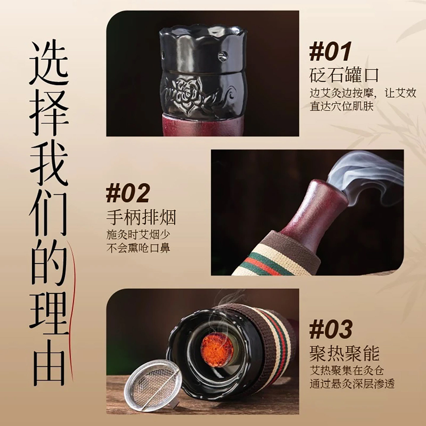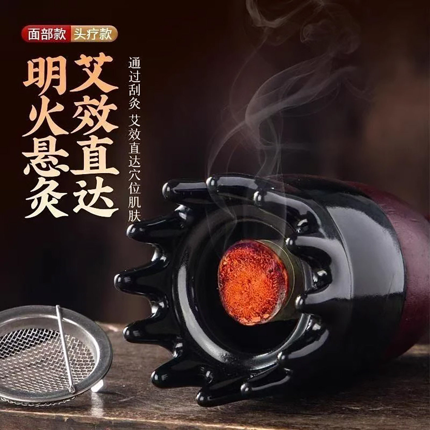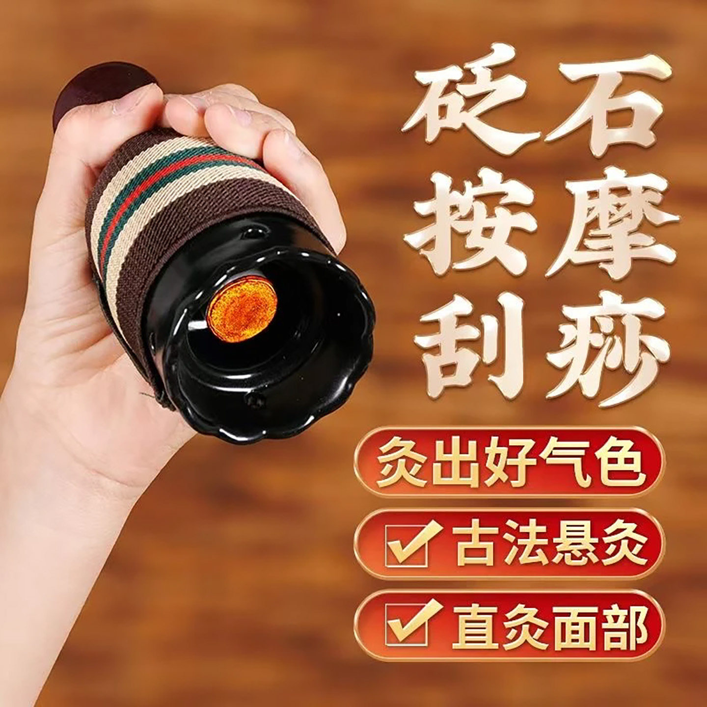 📚 面部砭石艾灸罐头疗罐刮痧一体杯随身灸手持按摩温灸器艾灸头部