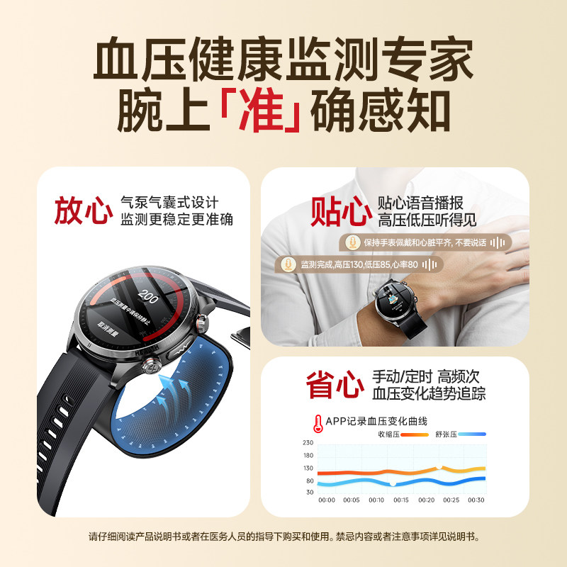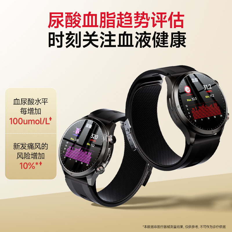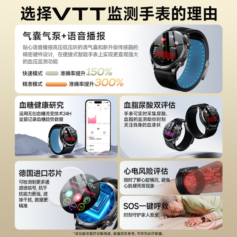📚 VTT智能手表血压血氧心电率运动血糖监测量仪老人健康手环监测仪