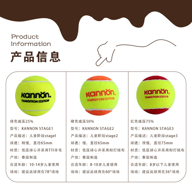 📚 Kannon康龙冠群儿童网球过渡橙色绿色红色青少年单人网球训练球