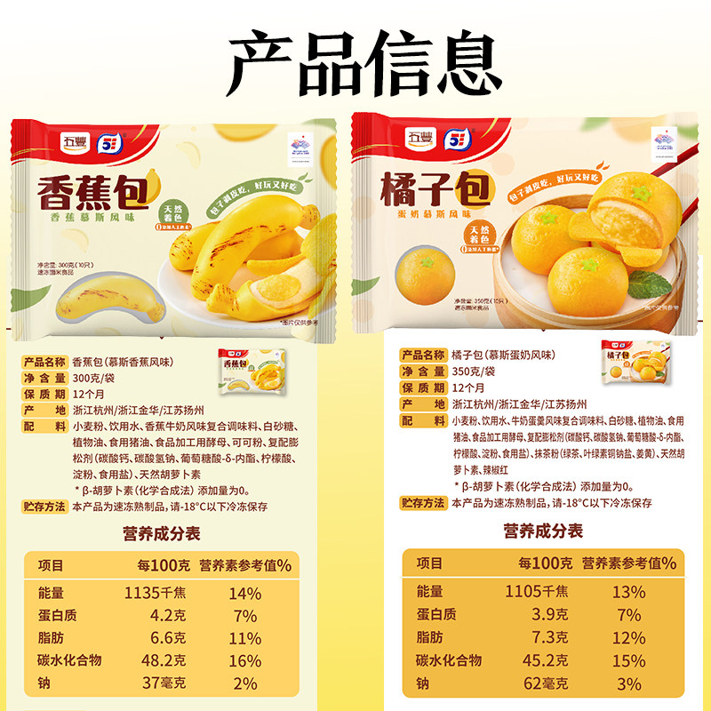 📚 五丰橘子包草莓包风味香蕉包流沙包子甜品儿童速食早餐面包点心