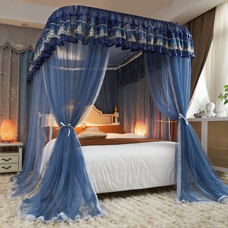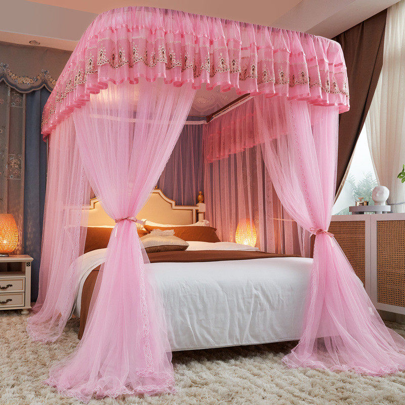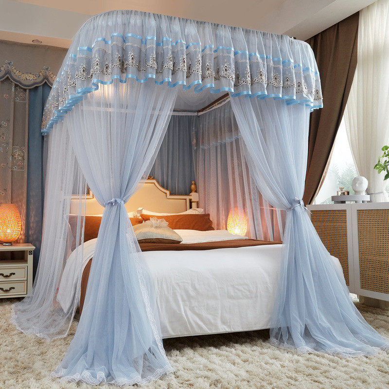📚 2024床帘导轨式蚊帐宫廷落地u型新款公主风三开门可升降家用卧室