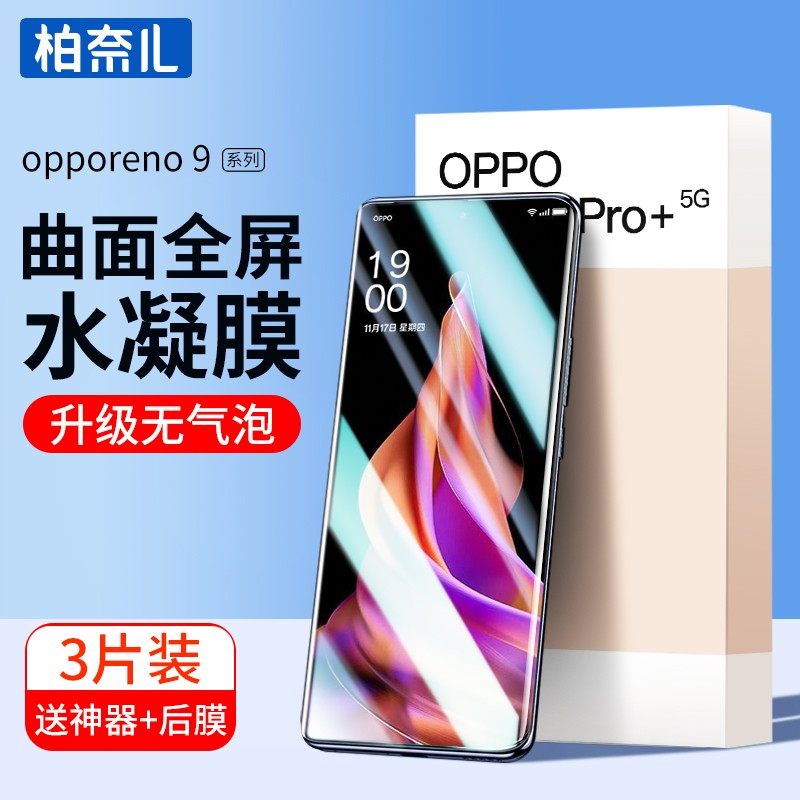📚 柏奈儿适用opporeno9手机膜OPPORENO9PRO水凝膜reno9钢化软膜pro曲面高清全胶全屏reno9pro+覆盖保护rono贴膜