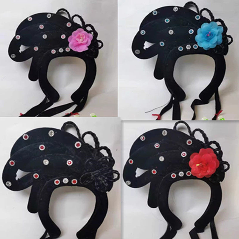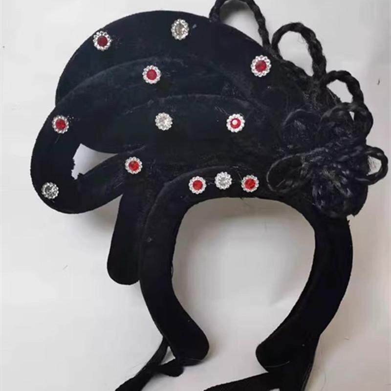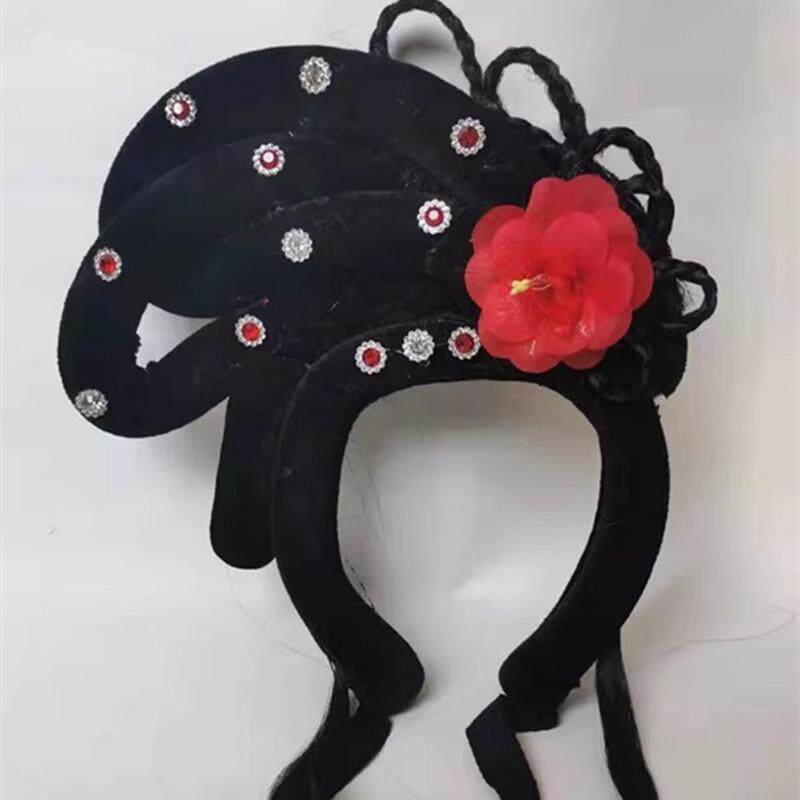 📚 唱戏头饰头戴戏剧戏曲假发头饰黄梅戏头饰花旦丫环全套古风头套
