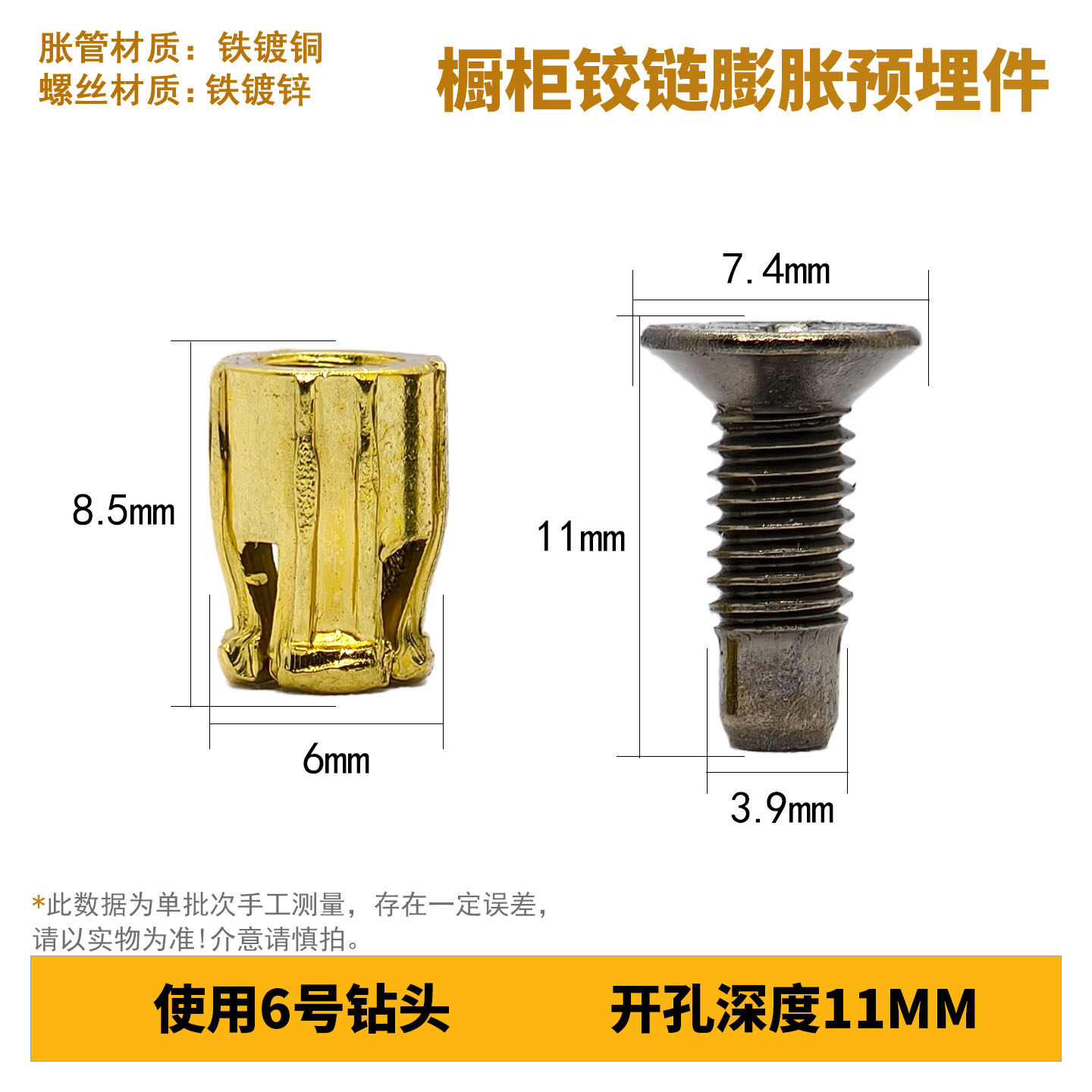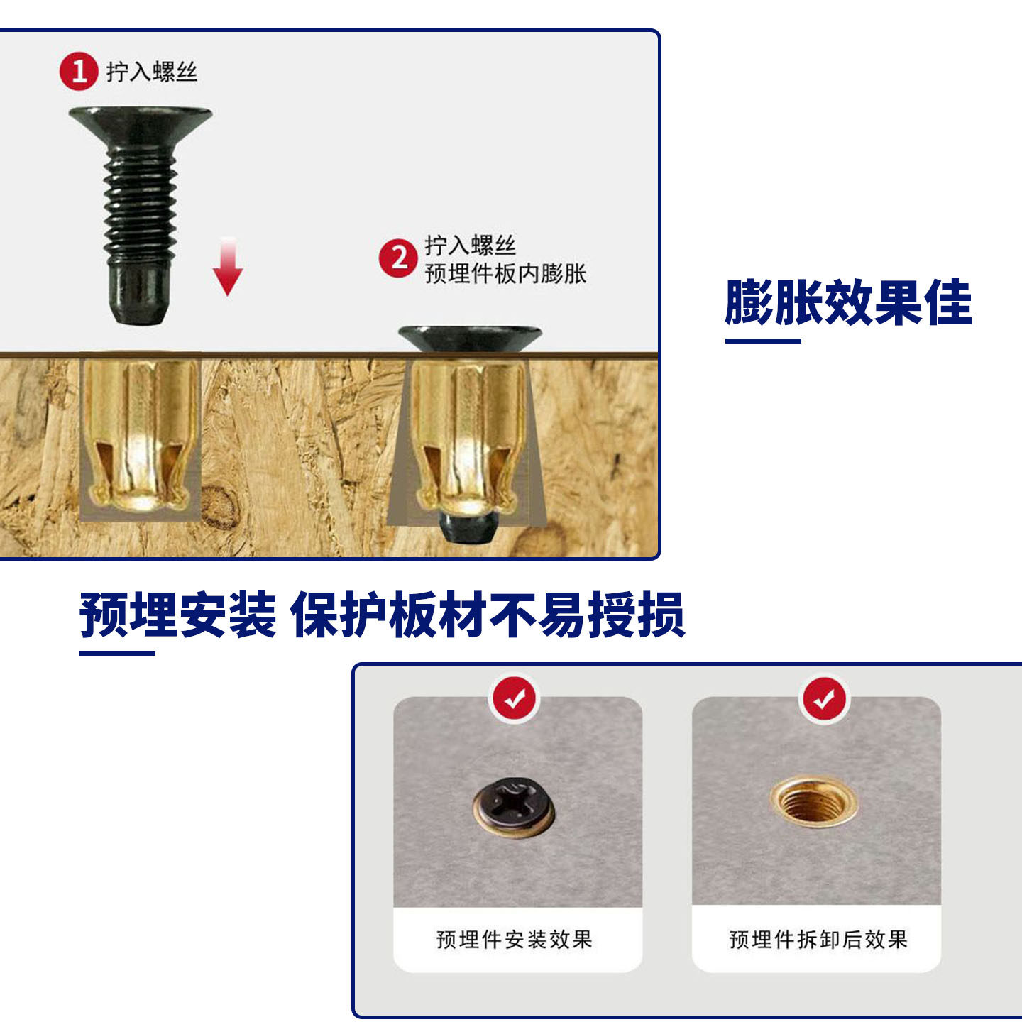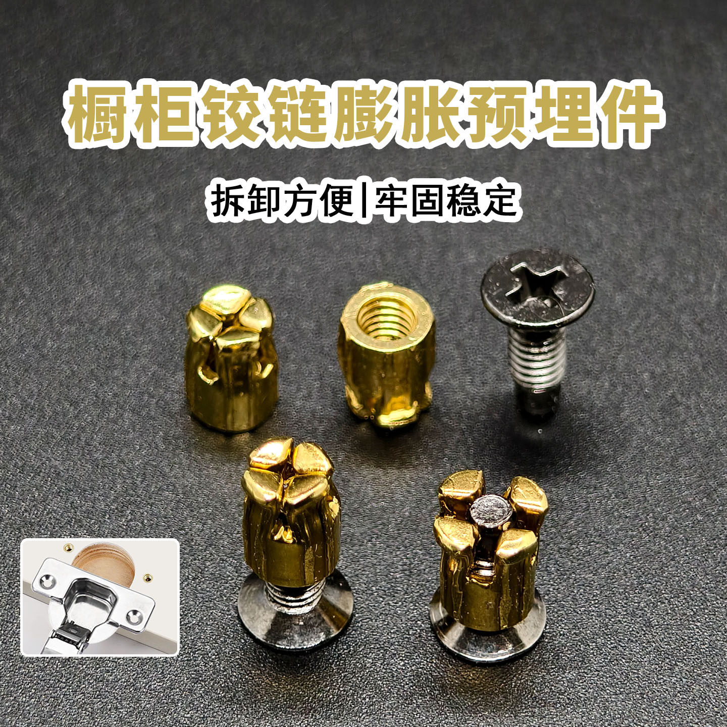📚 橱柜木门铰链预埋螺母修复铰链孔衣柜门合页金属膨胀塞门板预埋件