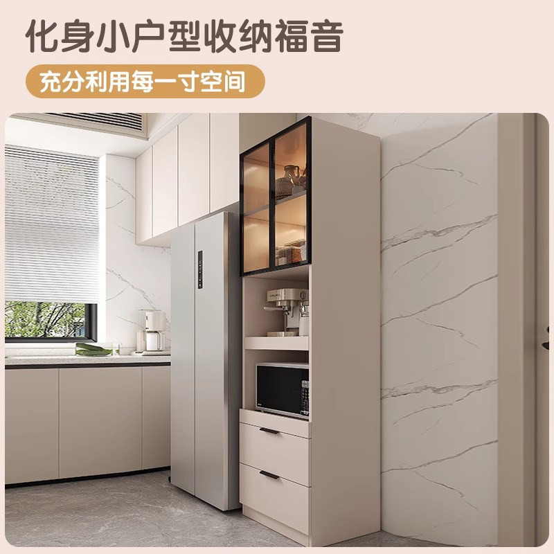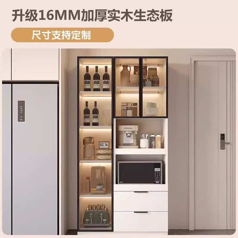 📚 定制冰箱边柜厨房微波炉烤箱置物架实木抽拉餐边柜靠墙一体储物柜