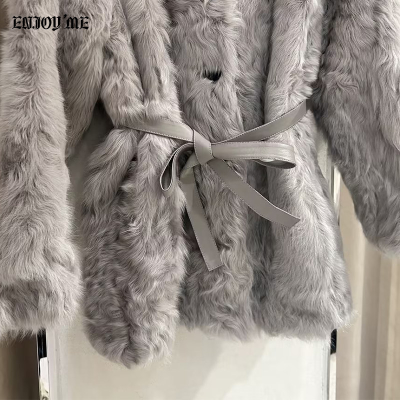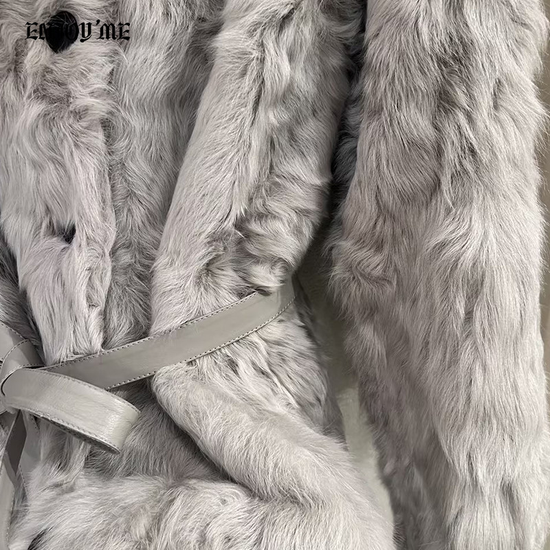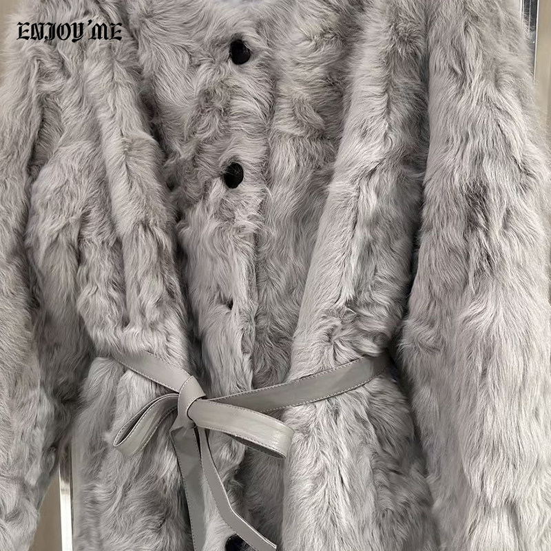 📚 ENJOYME商场同款高端小湖羊收腰皮草女春季圆领羊羔毛中长款外套