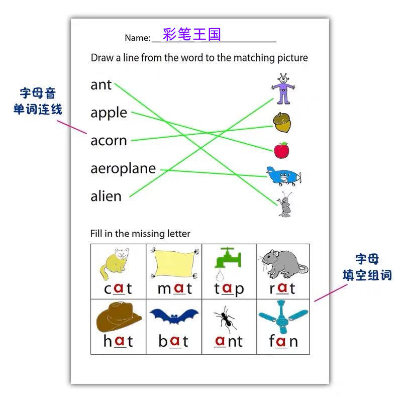 📚 幼儿英语26字母填色涂色本连线自然拼读phonics填空描红本作业纸