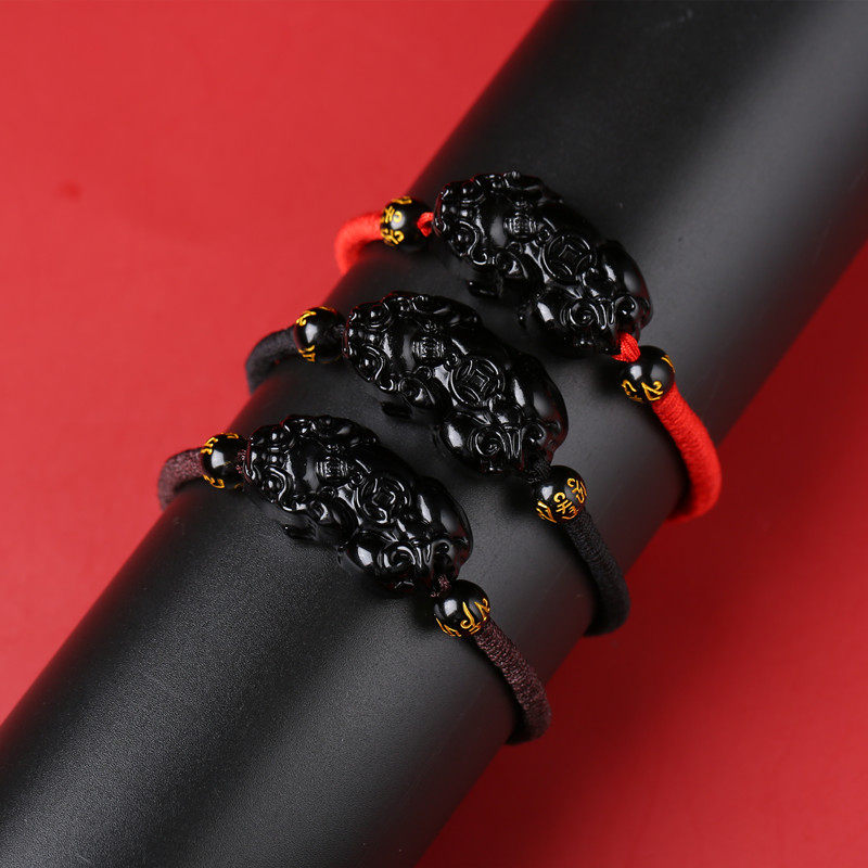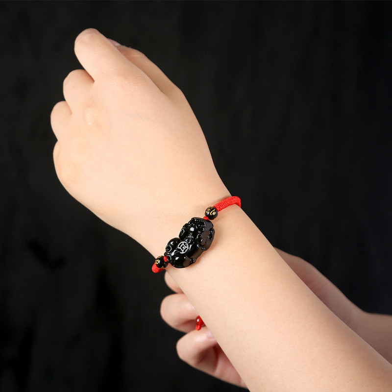📚 手工编织黑曜石貔貅手链小貔貅红绳手串黑绳皮丘编织男女款礼物