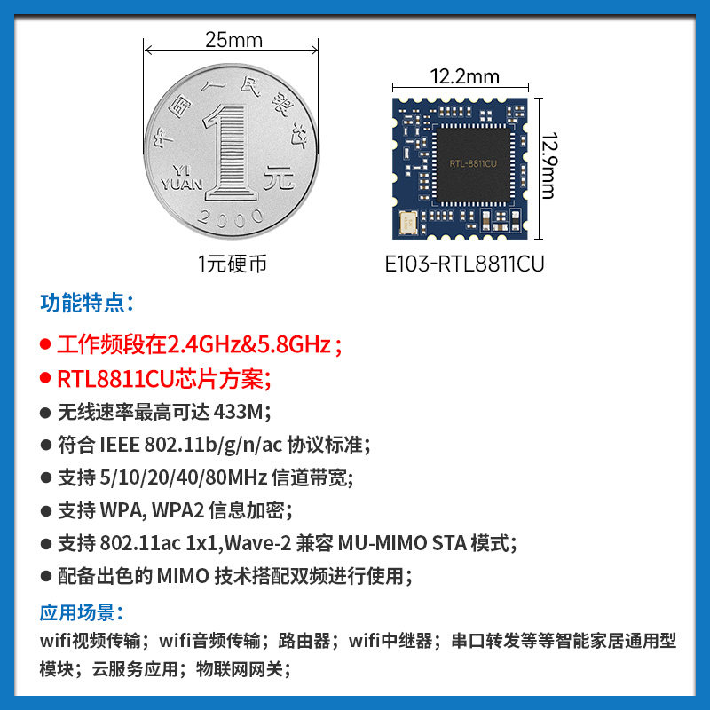 📚 2.4G&5.8G双频WiFi模组串口转WiFi模块瑞昱RTL8811CU芯片方案USB