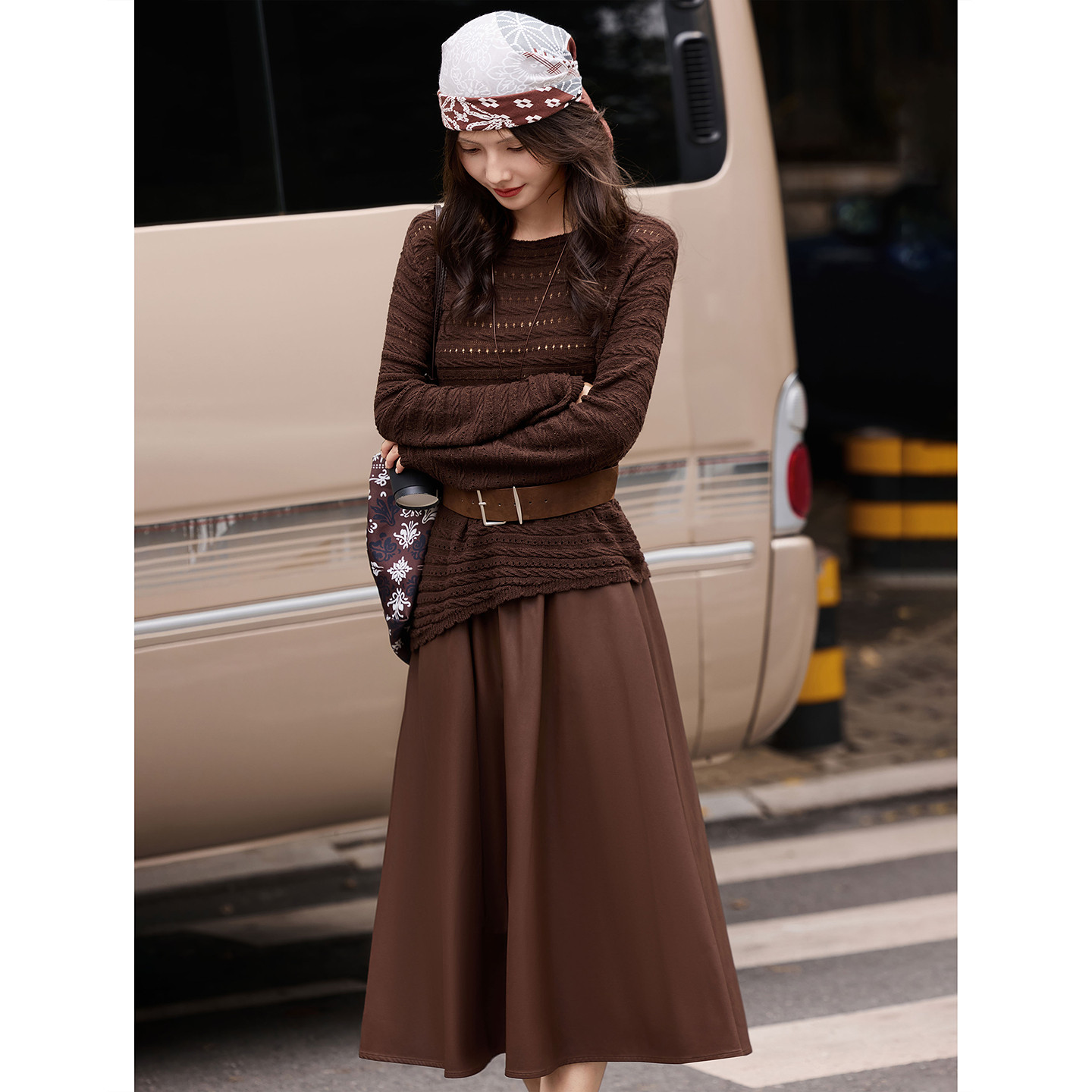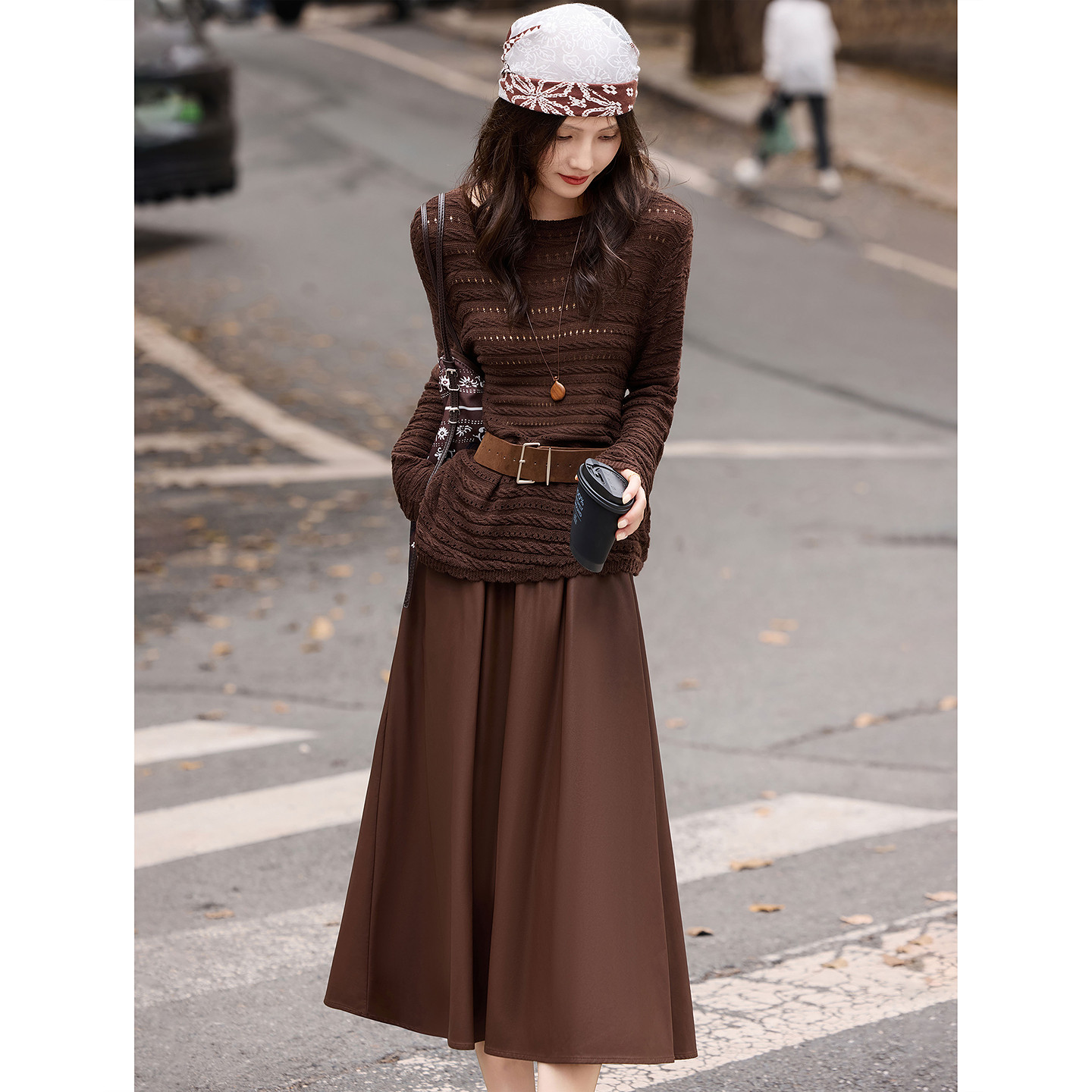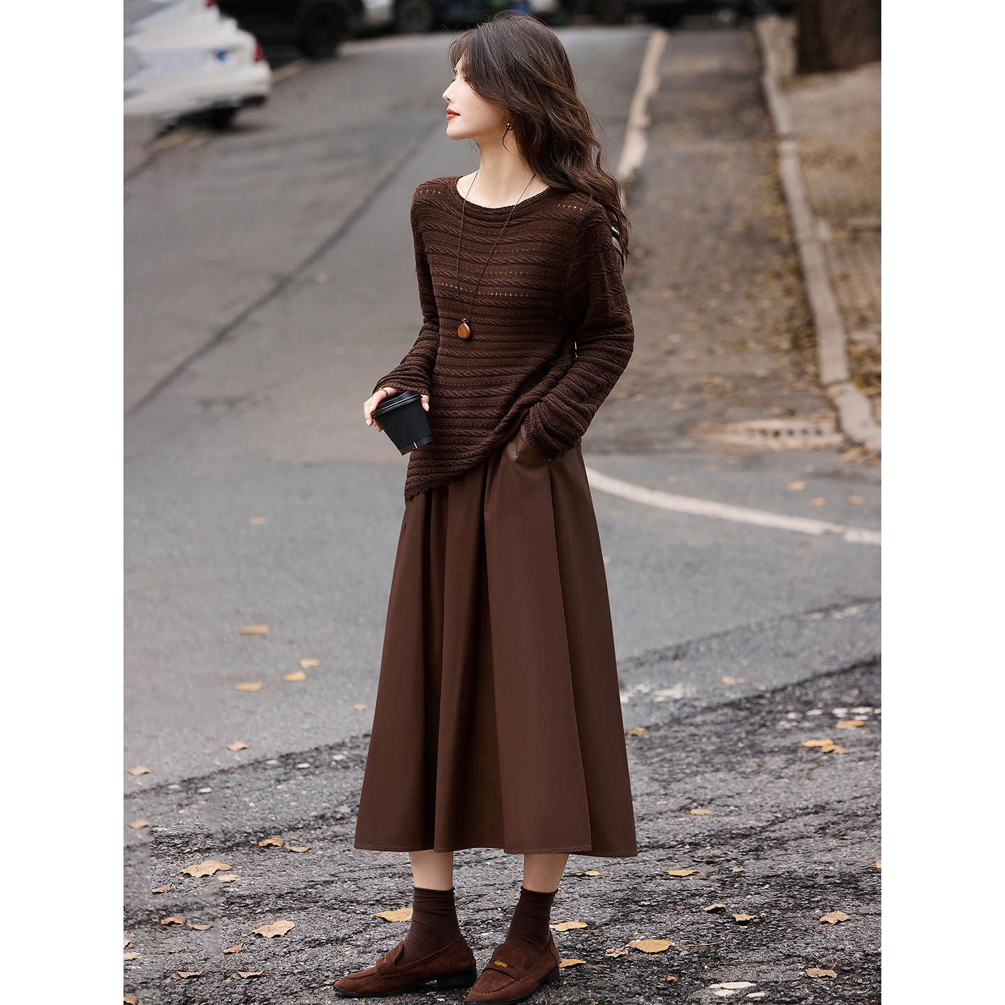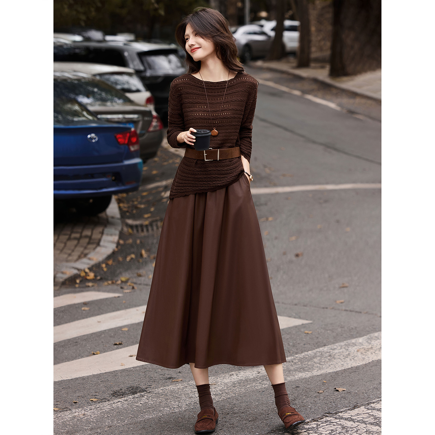 🍁初秋的微风中,苏醒的乐园新品女装套装闪亮登场!这款含绵羊毛针织衫半身皮裙套装,真的是让人一见倾心!💖