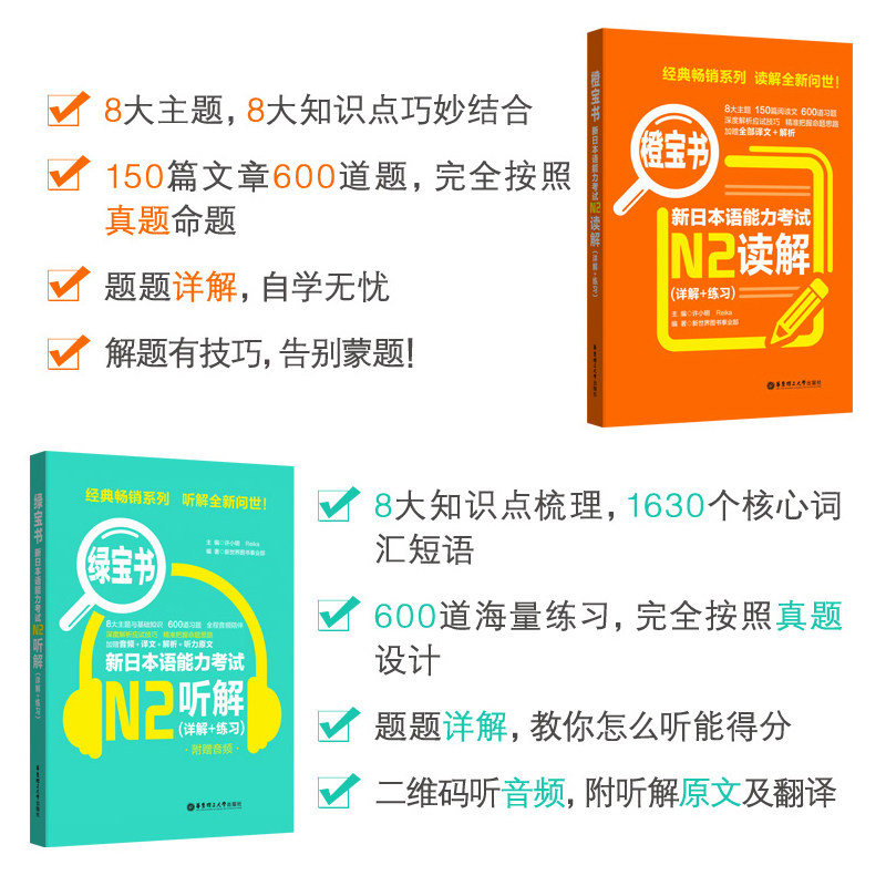 📚 新日本语能力考试红宝书蓝宝书日语N2大全集1000题橙宝书绿宝书文字词汇文法练习详解 日语自学教材N5N4N3N1