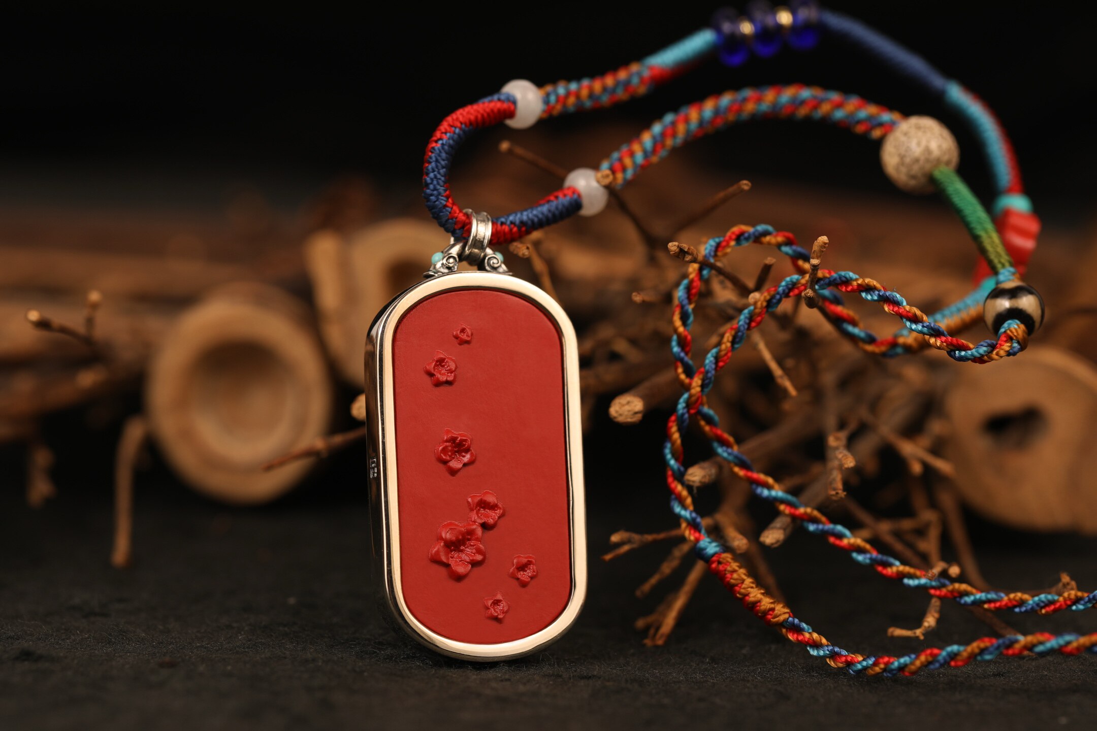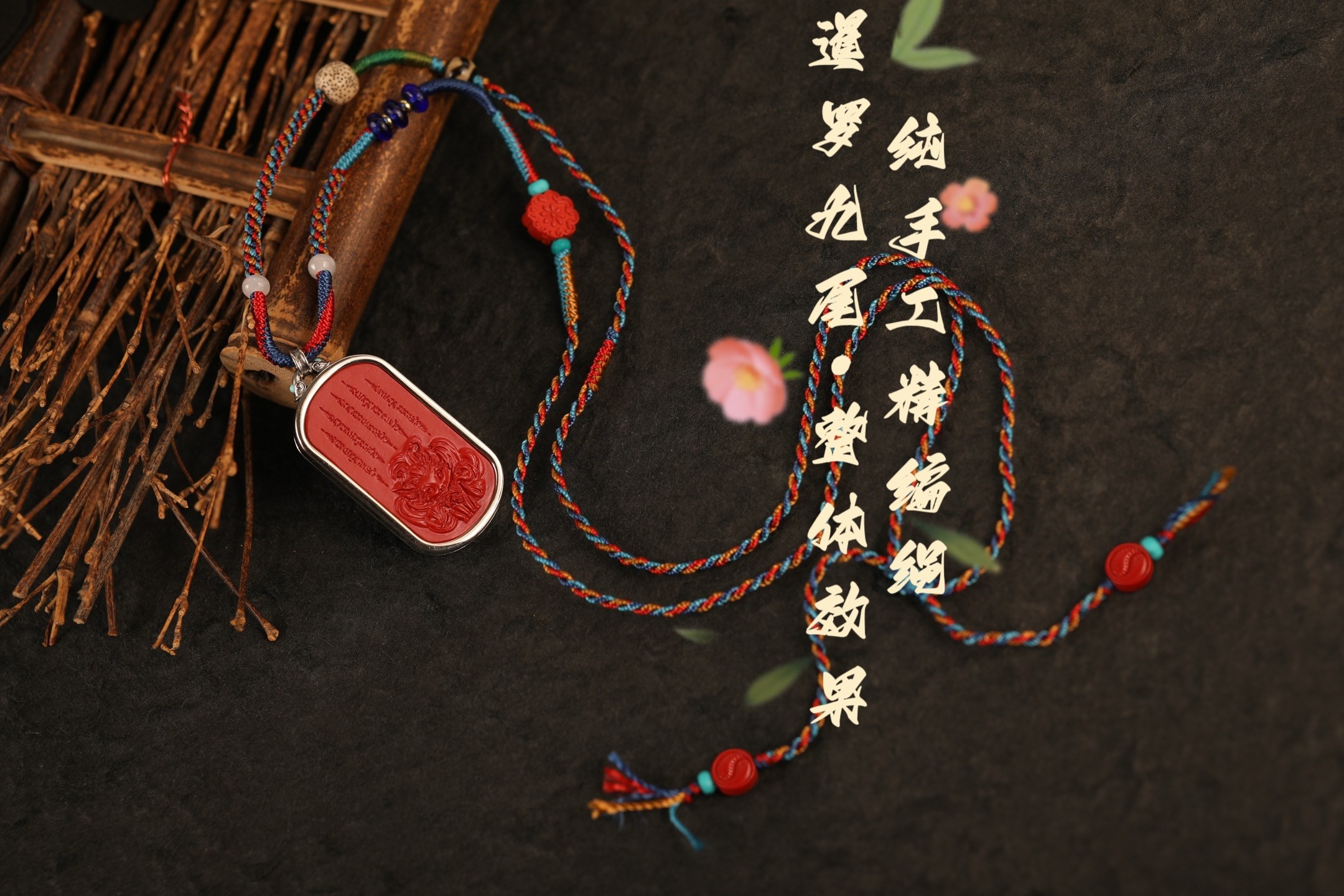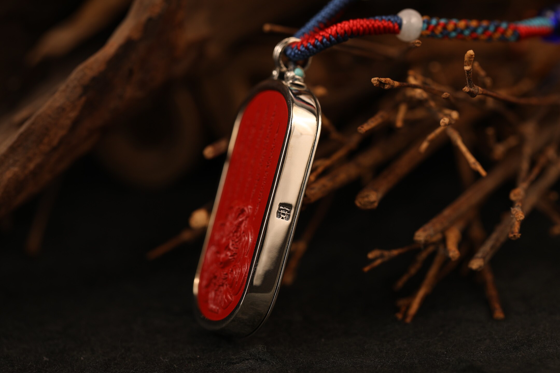 📚 灵丹真朱一生安朱砂暹罗九尾五条经文朱砂吊坠S925银镶嵌平安护身