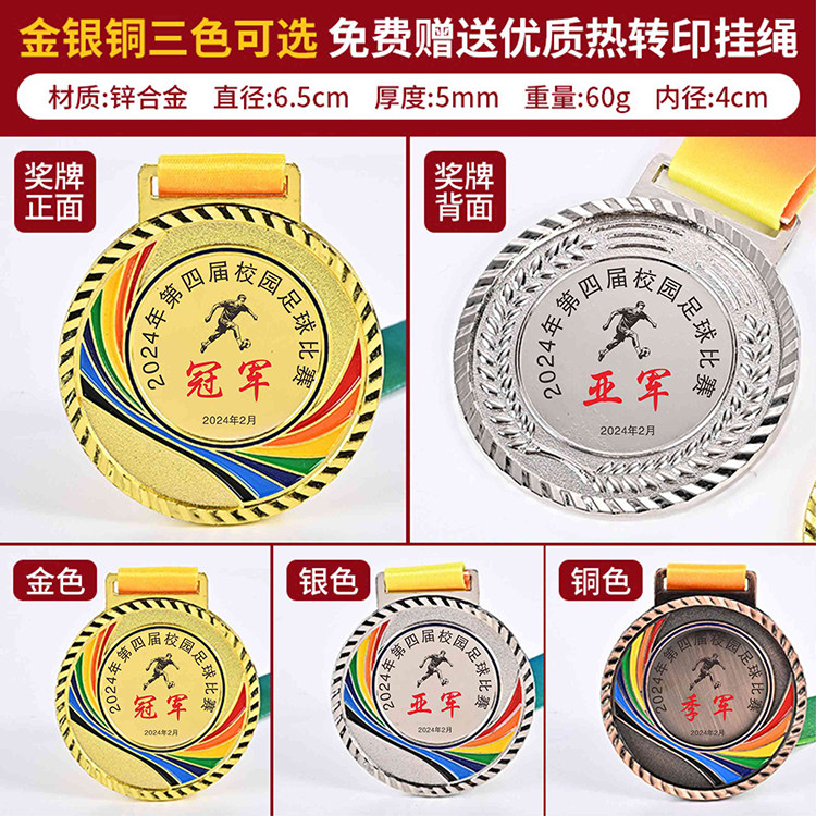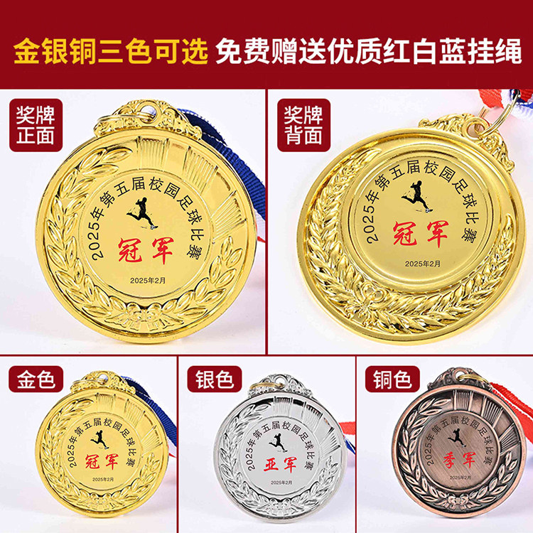 📚 足球奖章金属奖牌定制运动比赛荣誉纪念挂牌金银铜颁奖定做牌学生