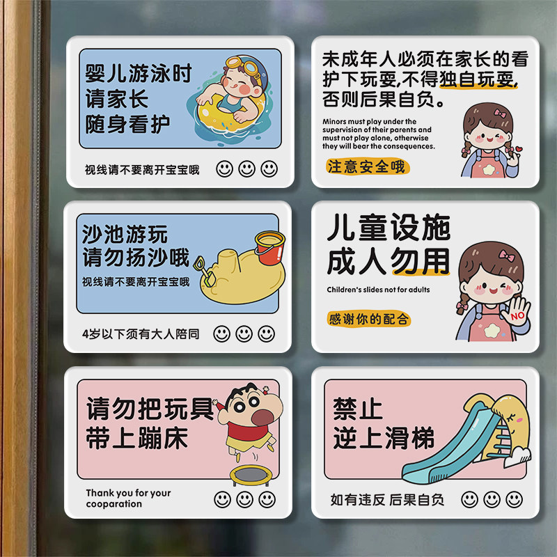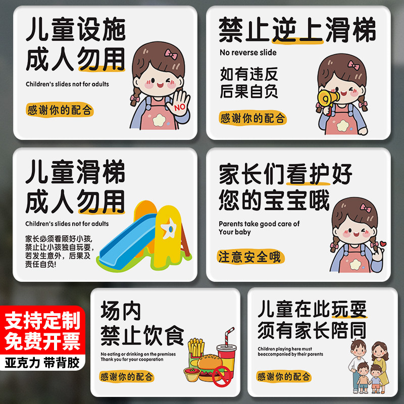 📚 商场游乐园安全标语提示牌免费定制亚克力儿童滑滑梯设施安全使用告知标志牌宝宝室内游乐场玩耍温馨提示牌