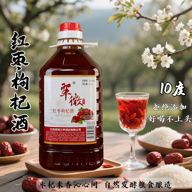 📚 翠微三甲红枣枸杞糯米酒10度纯粮酿造客家米酒自然发酵酒低度果酒