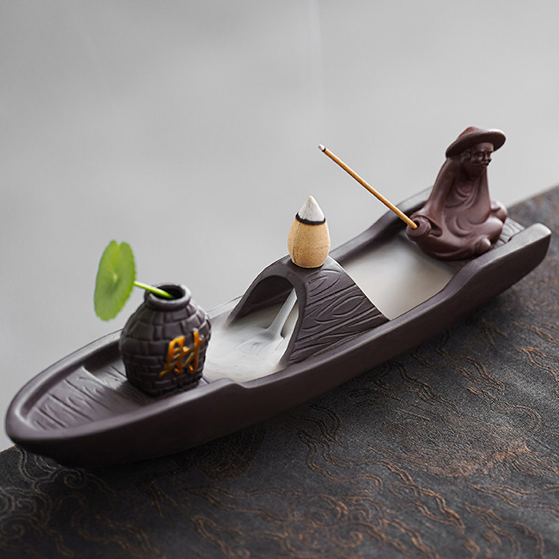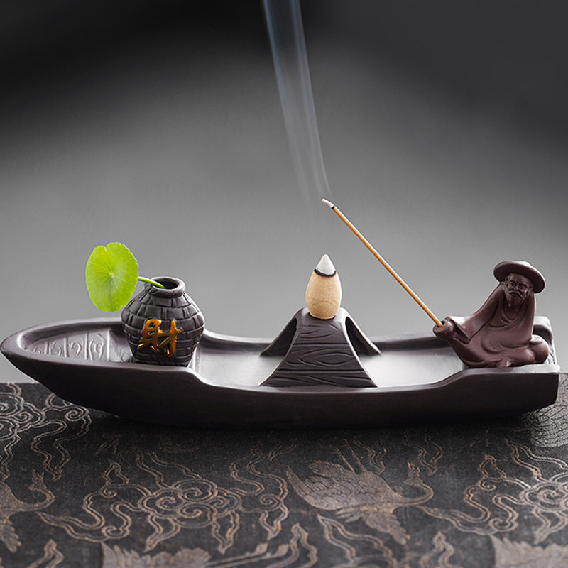 📚 倒流香炉创意老翁垂钓香插香座点香茶道香薰禅意个性摆件陶瓷香炉