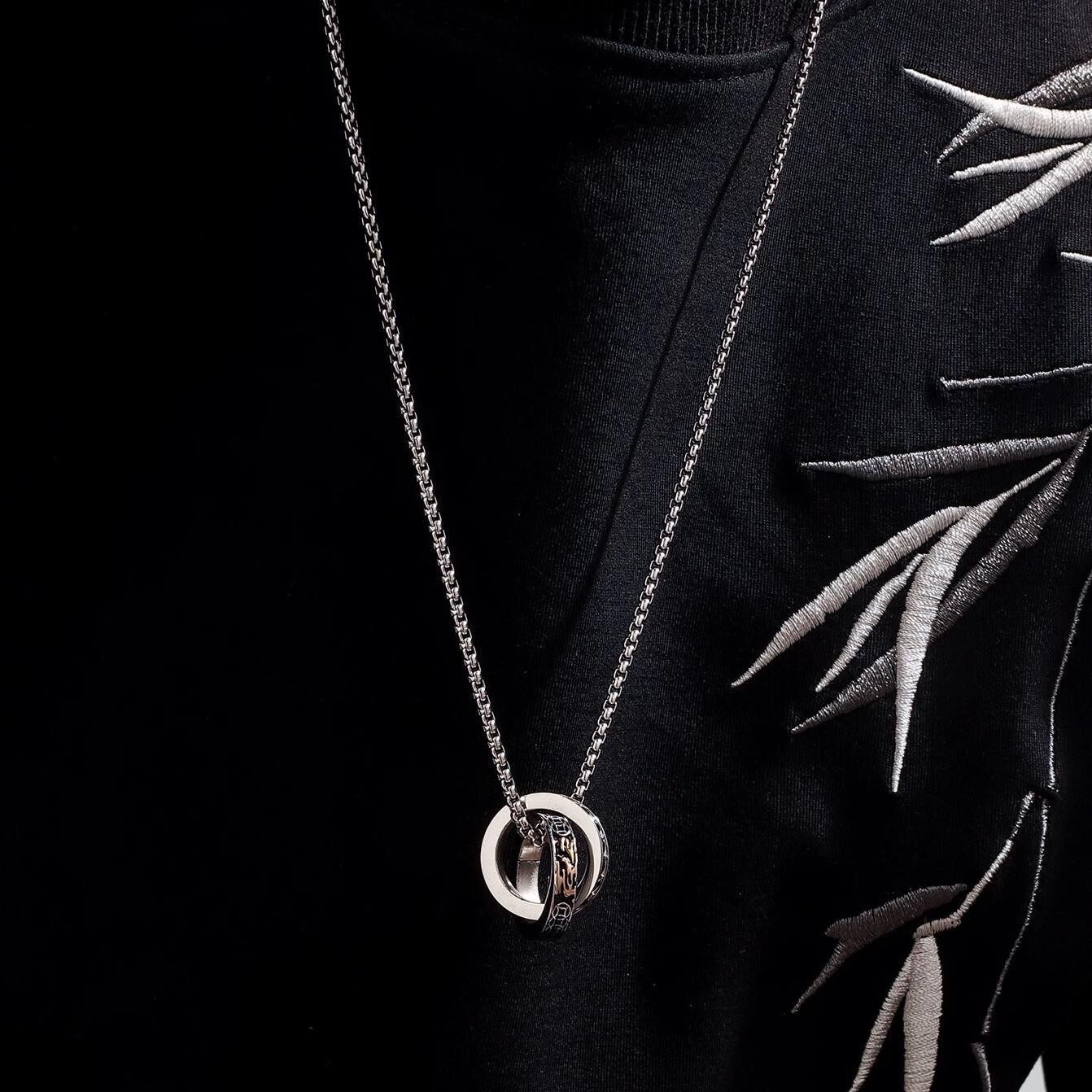 📚 Vintage古着 双环吊坠貔貅项链男小众设计高级感痞帅毛衣链锁骨链