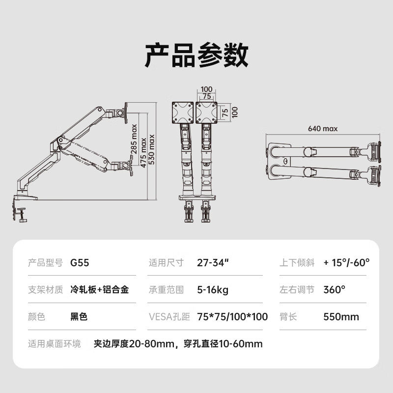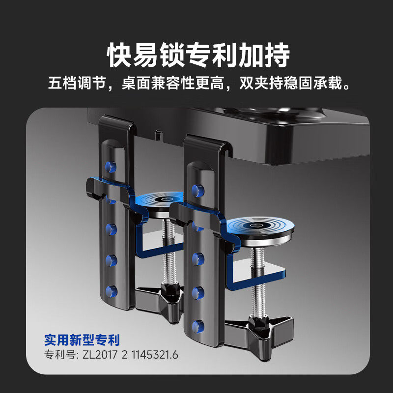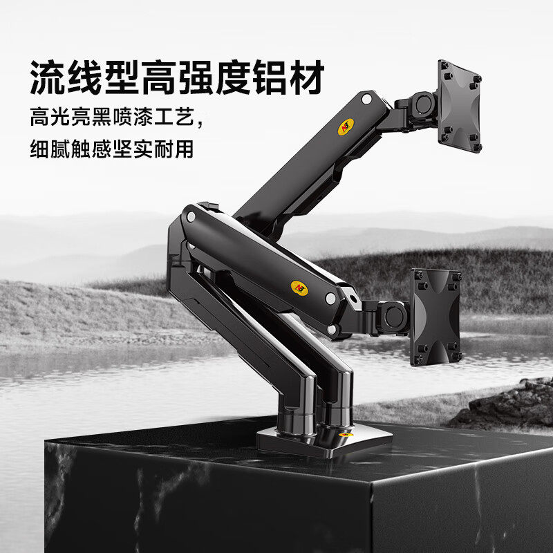 📚 极速双萤幕显示器支架带鱼t曲面屏 上下叠加免打孔电脑萤幕可调节