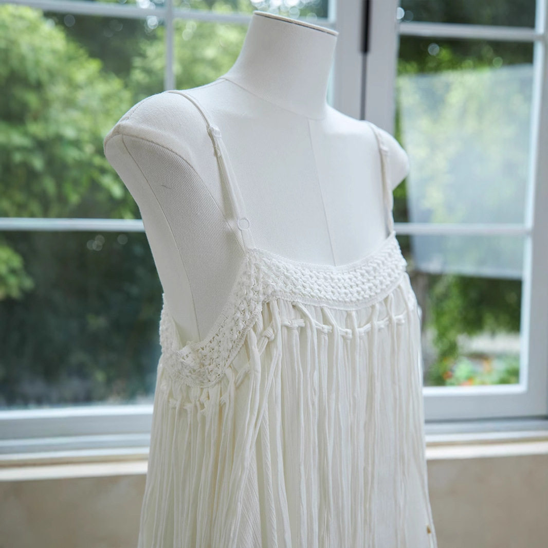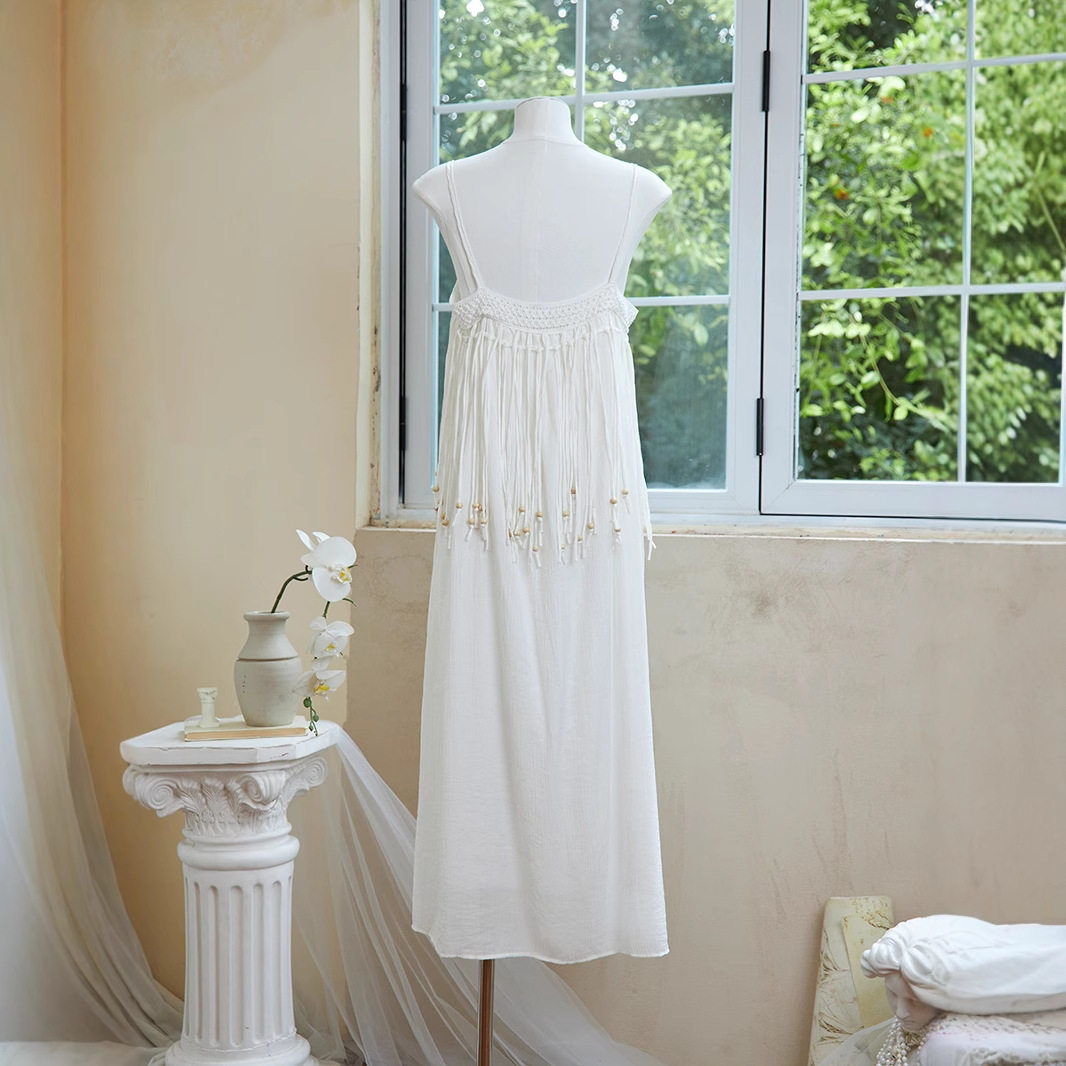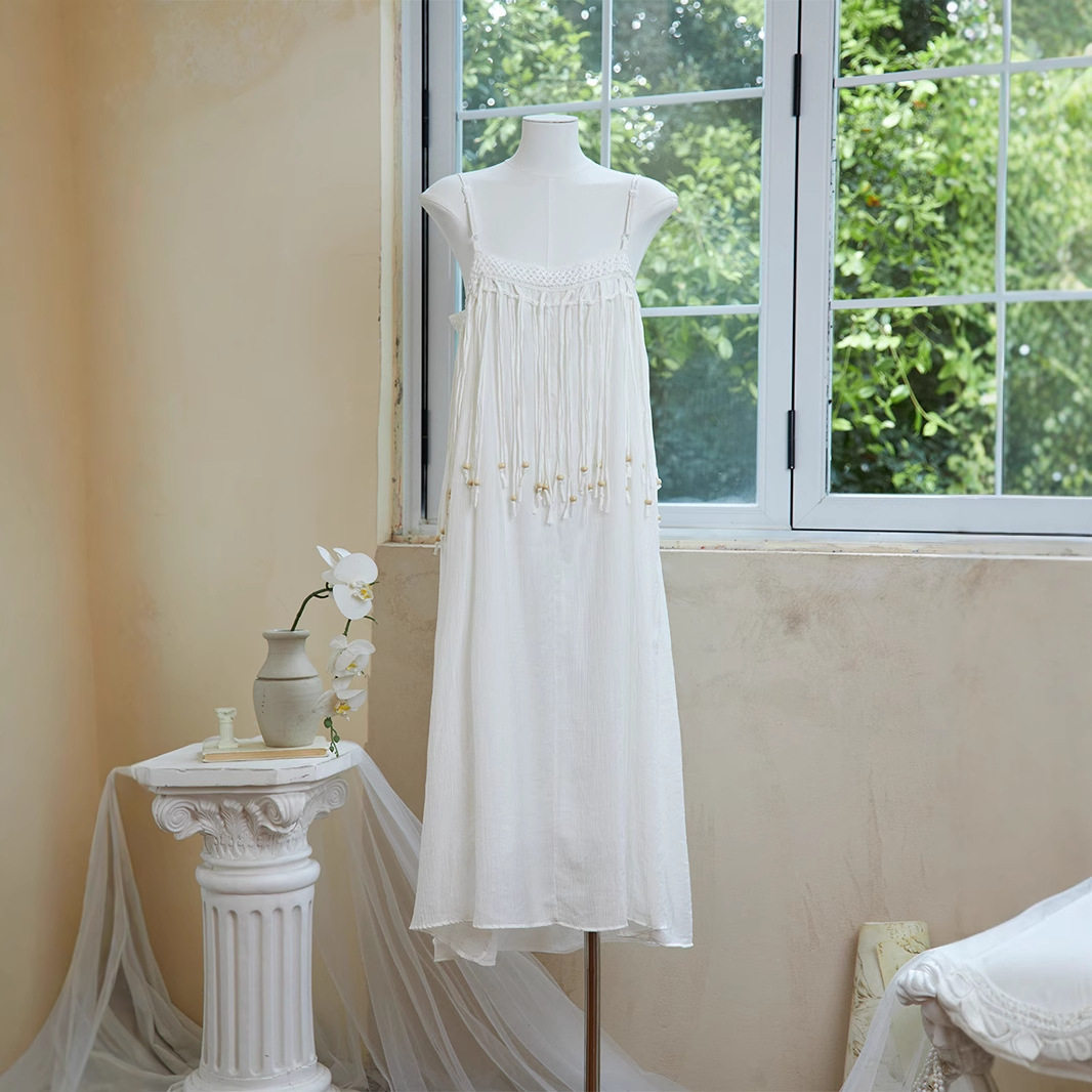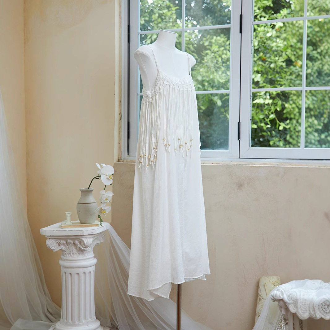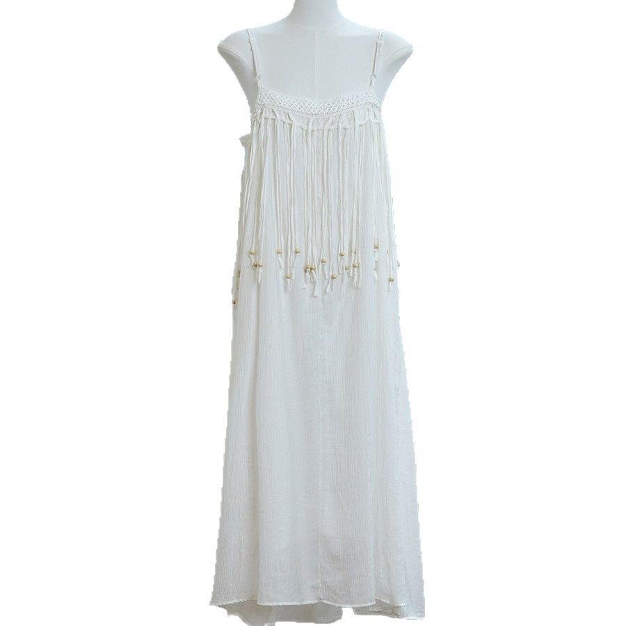 📚 特价可扎染纯白流苏吊带连衣裙女装民族风沙滩裙云南旅游穿搭