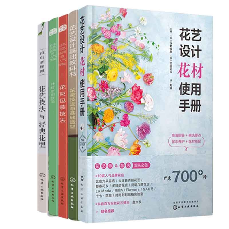 📚 花艺师花店入门教程书5册 花艺设计花材使用手册日本花艺名师的人气学堂花束包装叶材的使用技法花束技法与基础造型与经典花型书籍