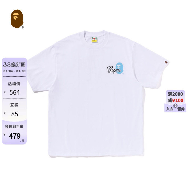 09¥ HU591 UJpRUtRFOys¥ https://m.tb.cn/h.icCeSPp BAPE男装24年秋冬撞色猿人花式字母印花短袖T恤110303N --------------------- 【原售价】799元 【现售价】564元。