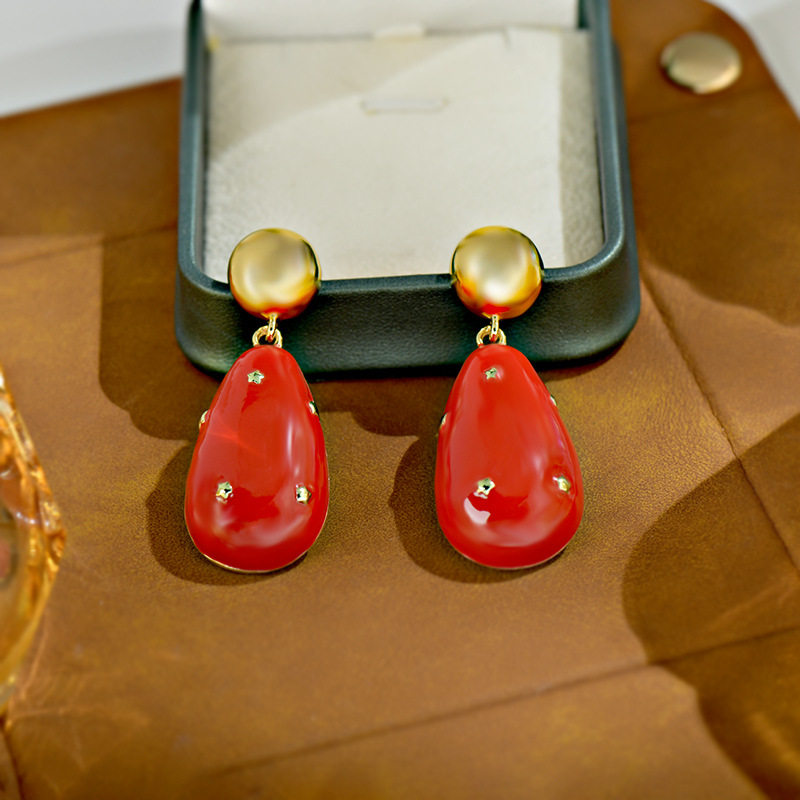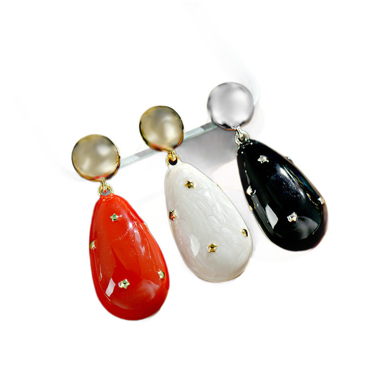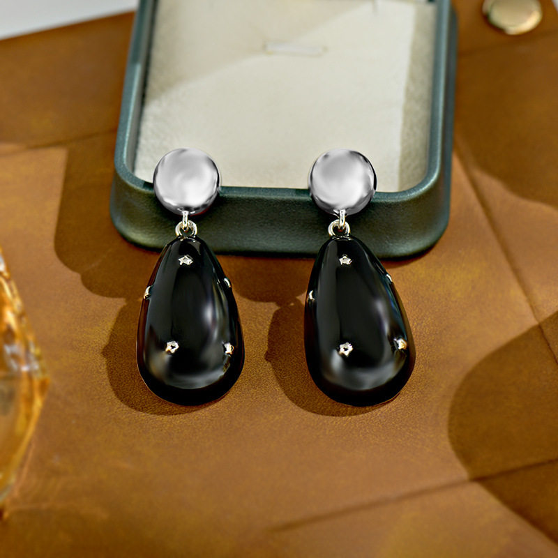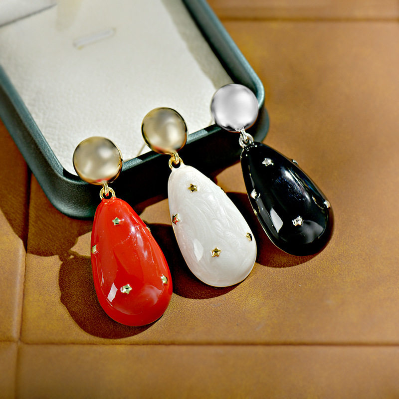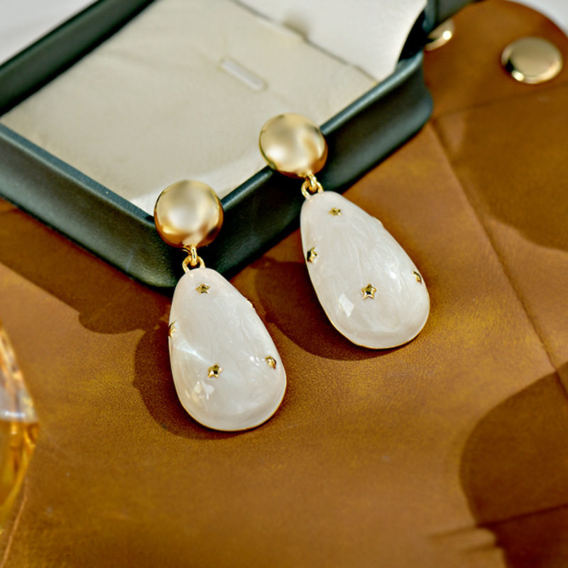 📚 欧美珠光滳釉水滴精工高品质925银耳钉小众设计感耳环女