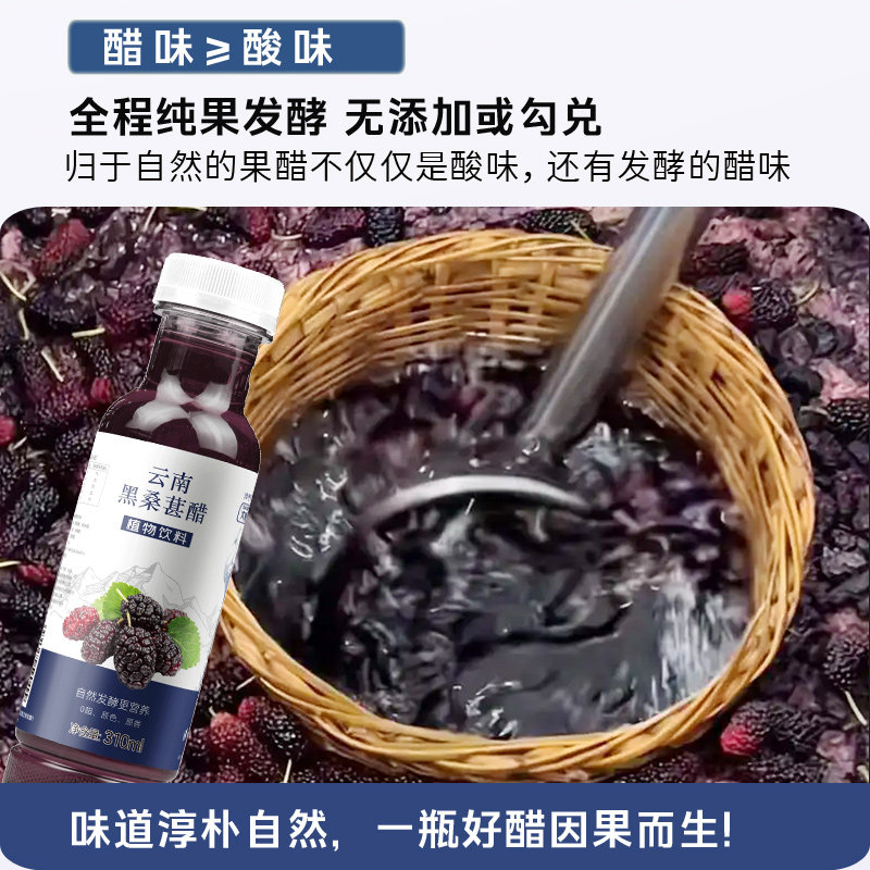 📚 云南黑桑葚醋直接饮用零脂肪天然花青素本色正宗口味果香浓郁