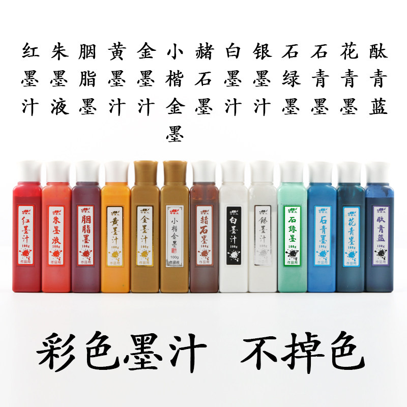 📚 奇墨王彩色墨汁小楷金色墨水毛笔书法 白 金 银 朱 红 绿 黄 朱液 白墨 黄墨汁 胭脂墨 石青 花青 酞青蓝