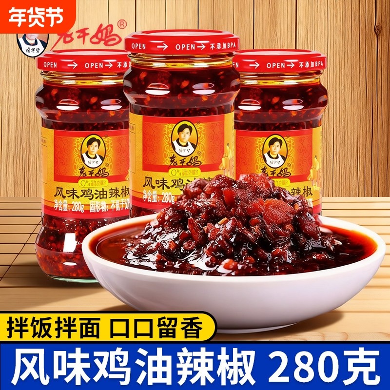 📚 老干妈风味鸡油辣椒280g贵州豆豉香辣辣子鸡辣椒下饭拌面酱牛肉