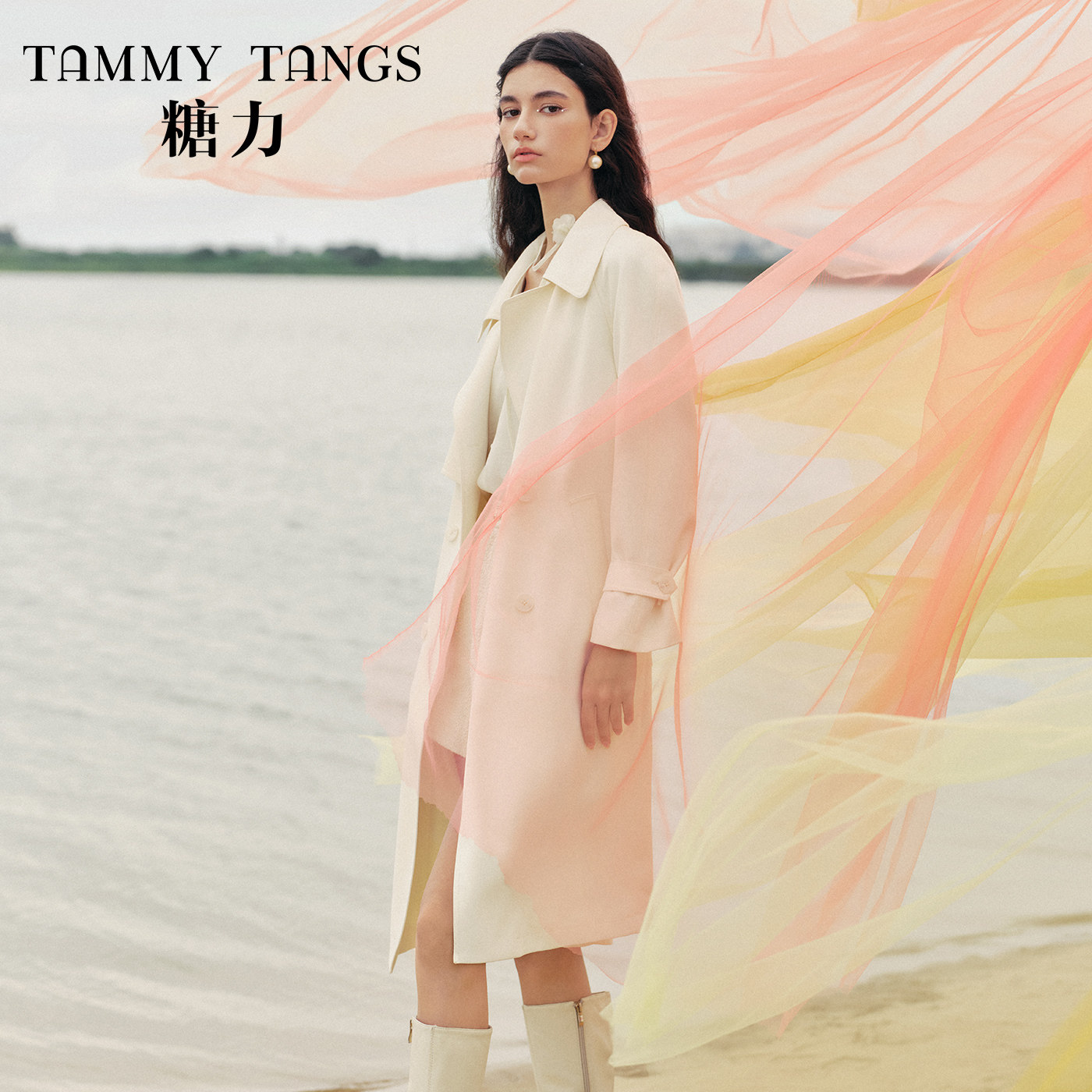 📚 【商场同款】糖力春秋季杏色法式气质显瘦中长款双排扣风衣外套女