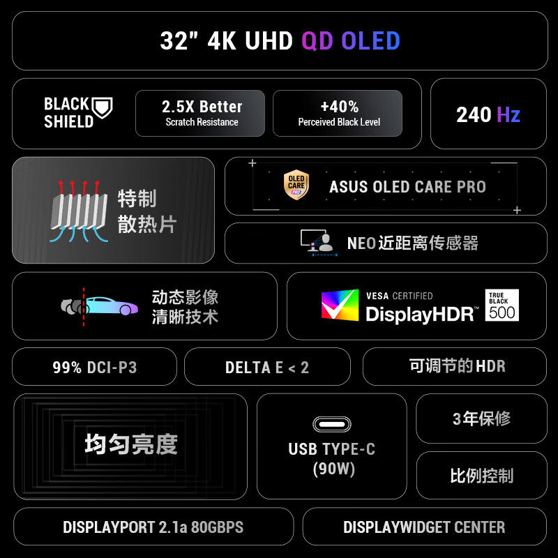 📚 华硕 ROG PG32UCDM3 31.5英寸第四代OLED 4K240HzType-c90W显示器
