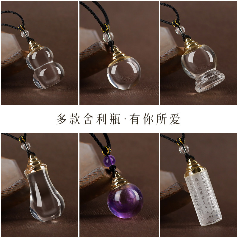 📚 原矿精雕天然白水晶舍利瓶吊坠天然紫水晶嘎乌盒空心瓶项链挂件