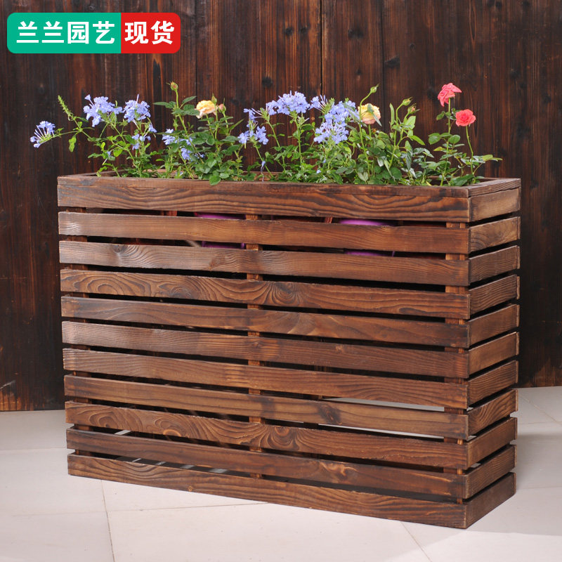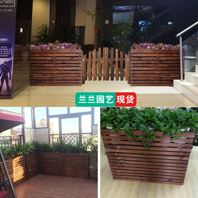 📚 木围栏长方形花槽 木栅栏花盆咖啡厅餐厅隔断 防腐木花架网格户外
