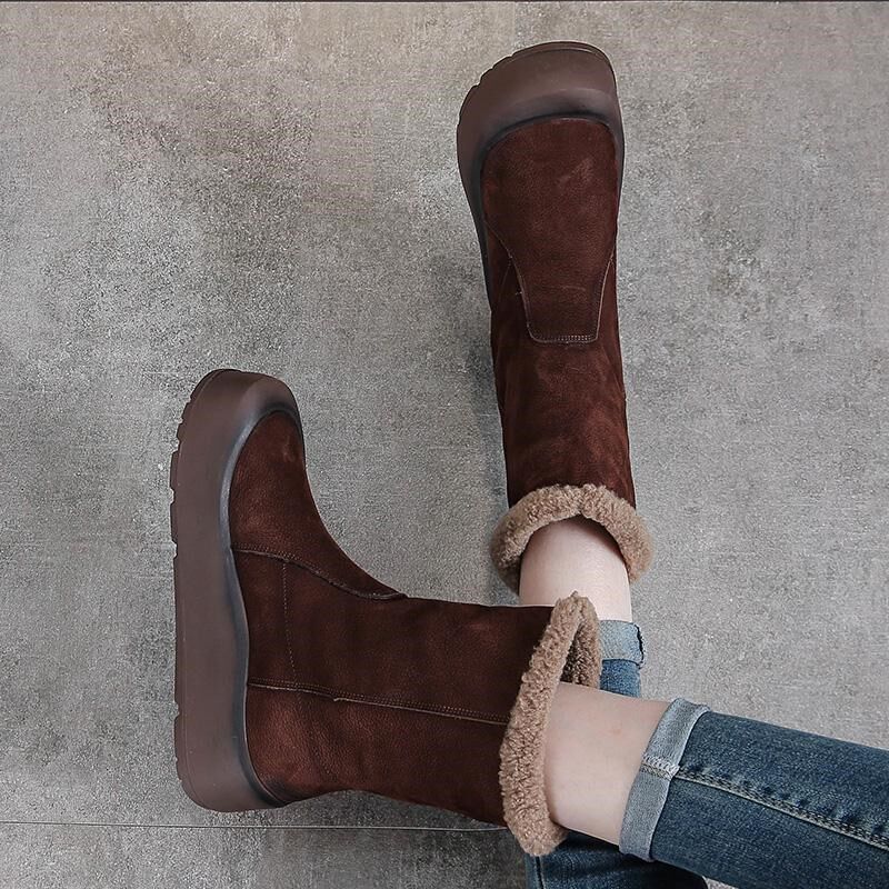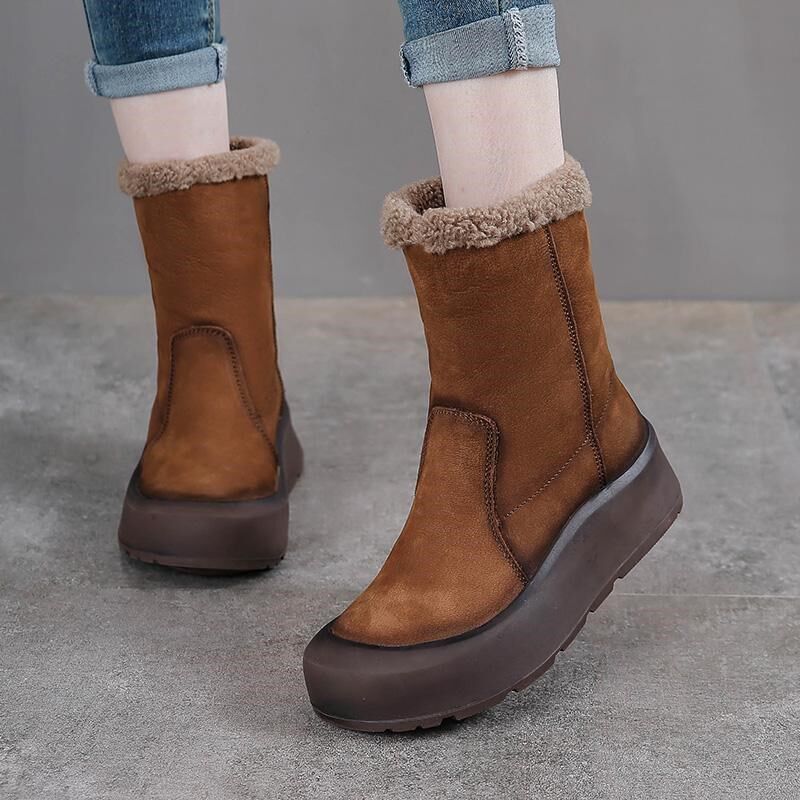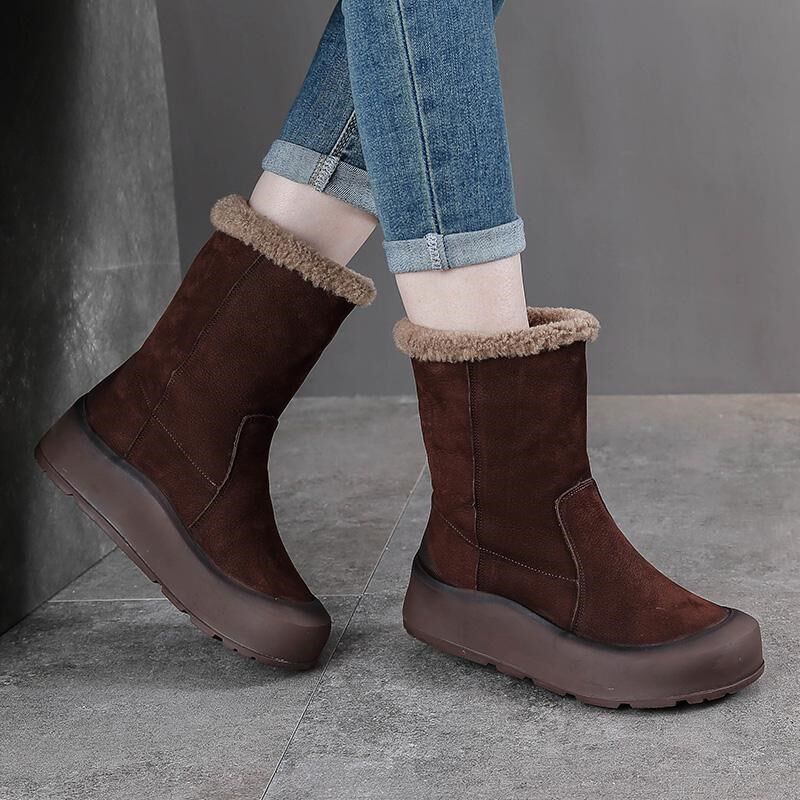 📚 加绒加厚保暖棉j靴厚底翻折两穿短靴头层牛皮复古雪地靴女秋冬新