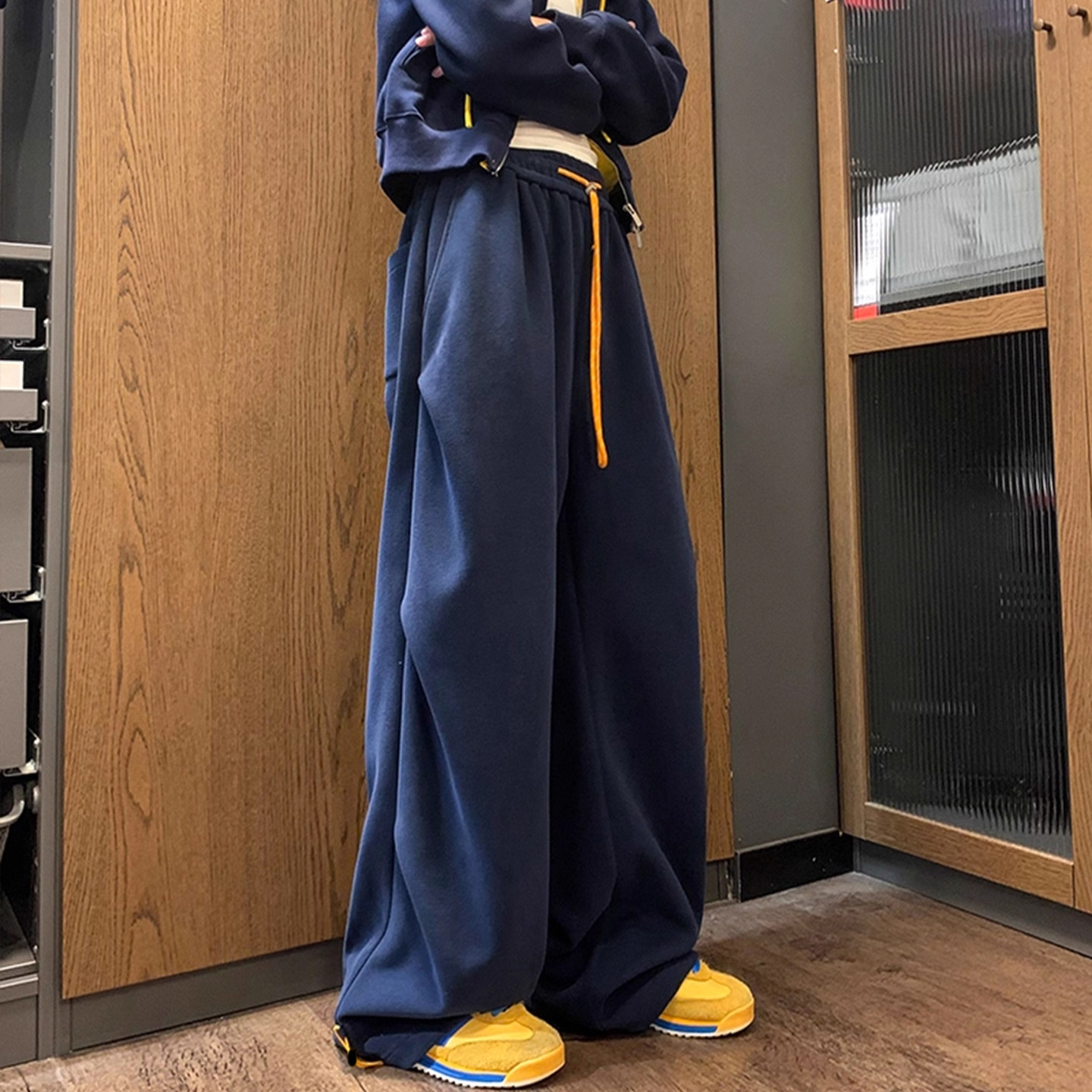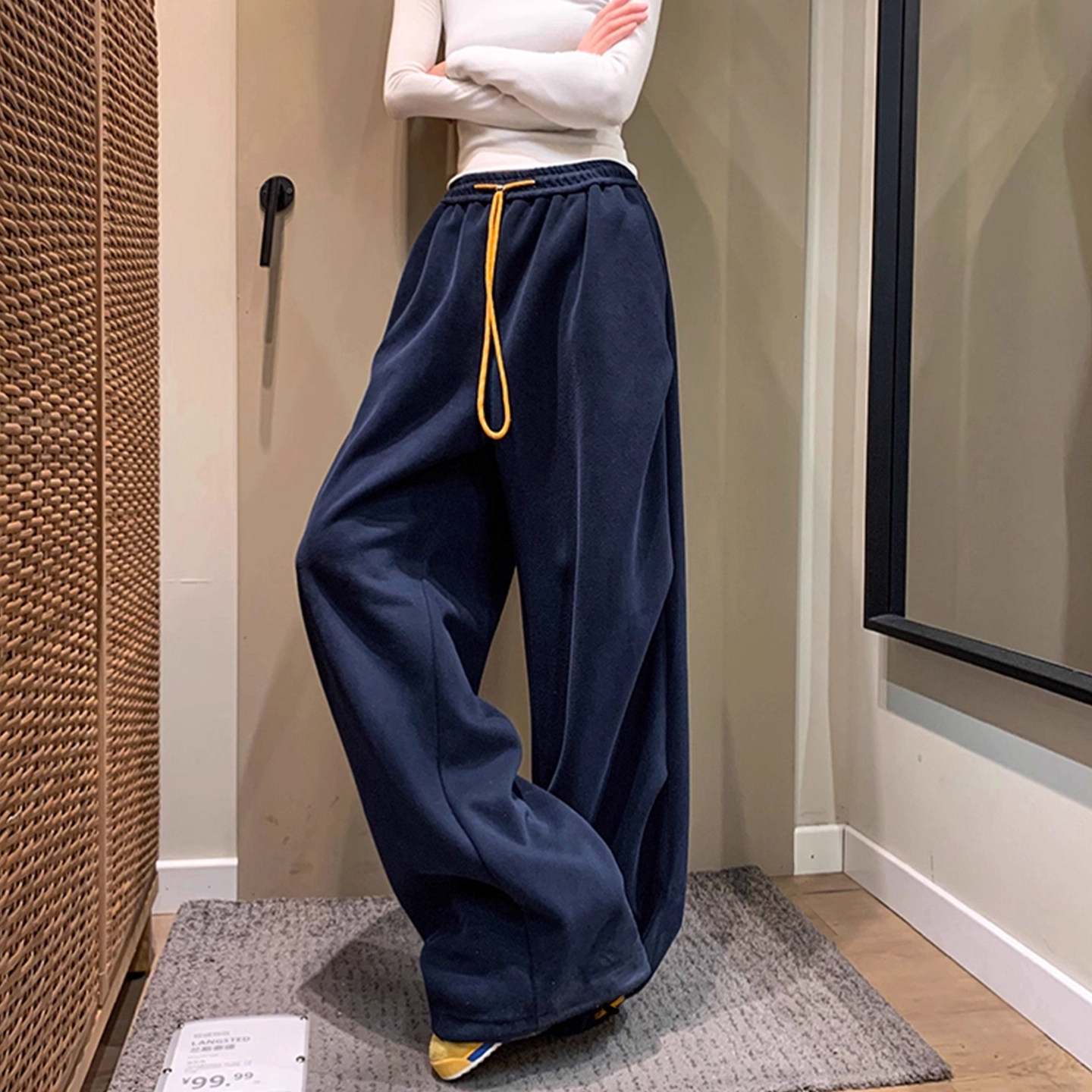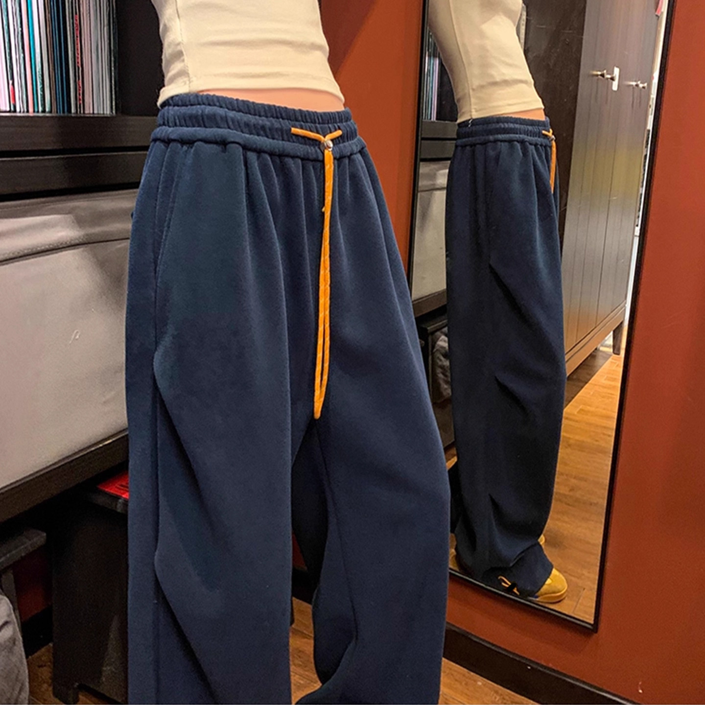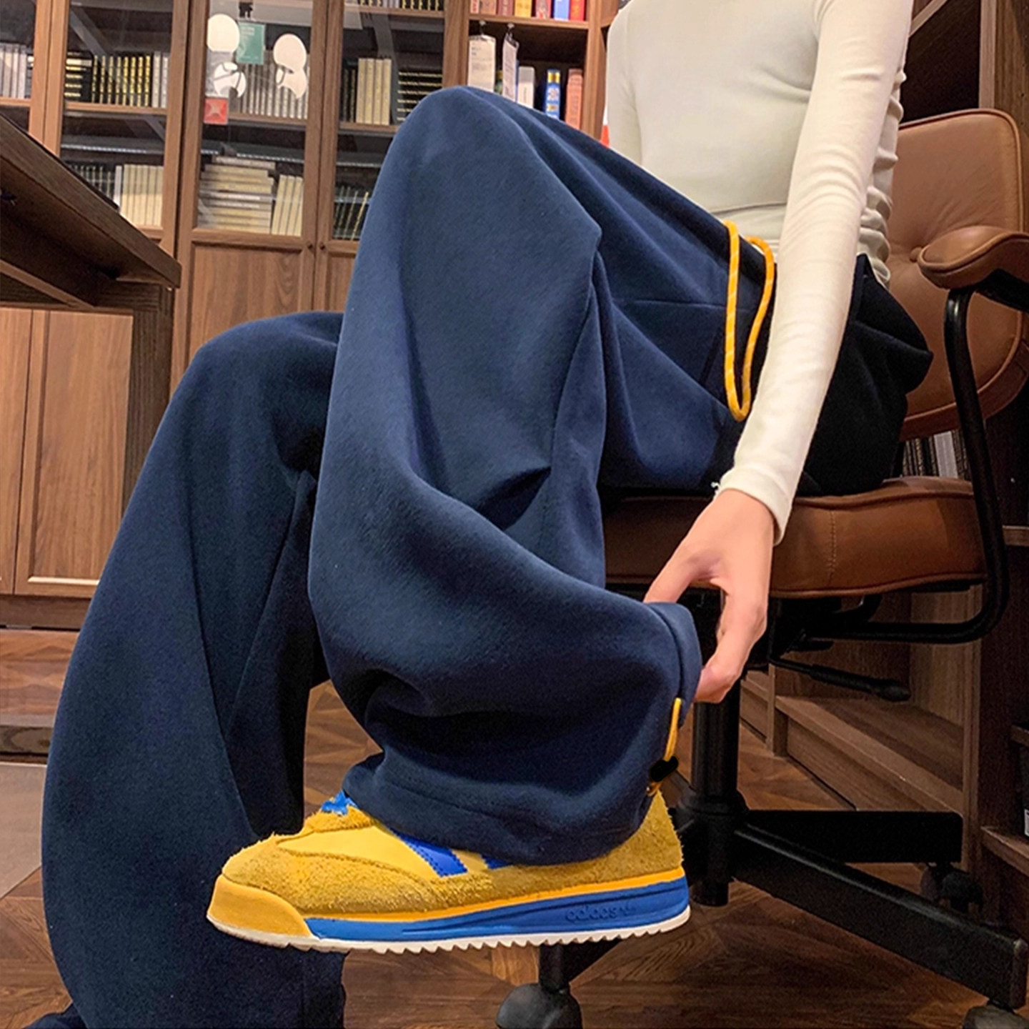 📚 高个子加长美式藏青色运动卫裤女秋冬加绒加厚宽松垂感拖地阔腿裤