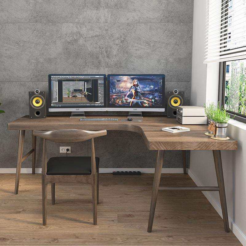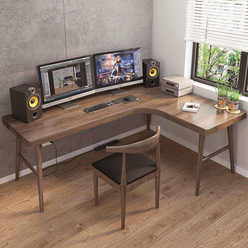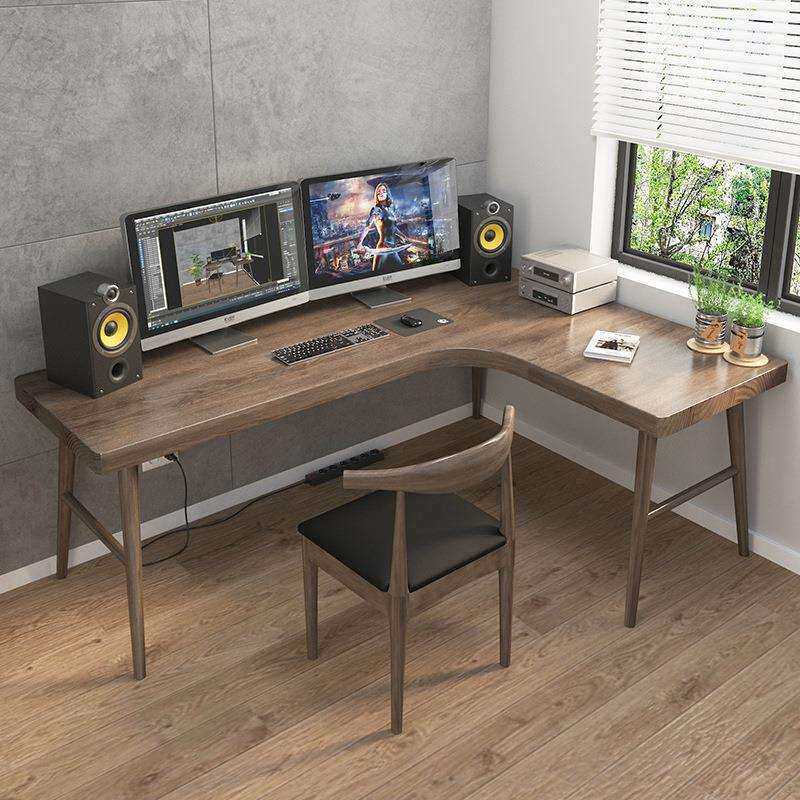 📚 实木L型电脑桌卧室转角电竞桌家用书房学习写字桌拐角办公工作台