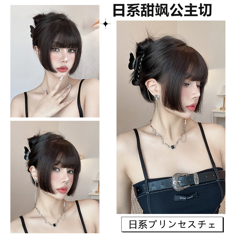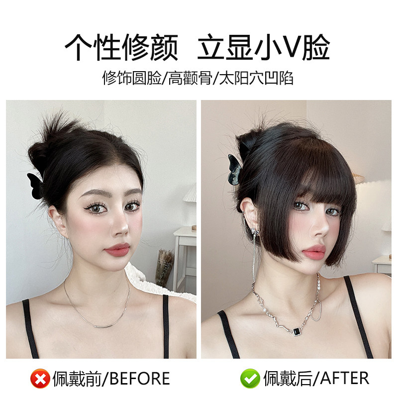 📚 真发片公主切假发刘海女自然前额漫画假刘海姬发加厚齐刘海假发片