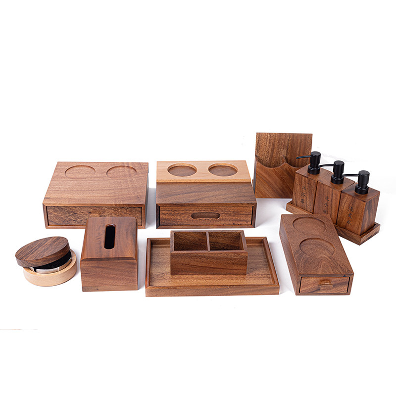 📚 胡桃木实木高级酒店卫生间一次性洗漱用品牙具收纳盒宾馆民宿定制