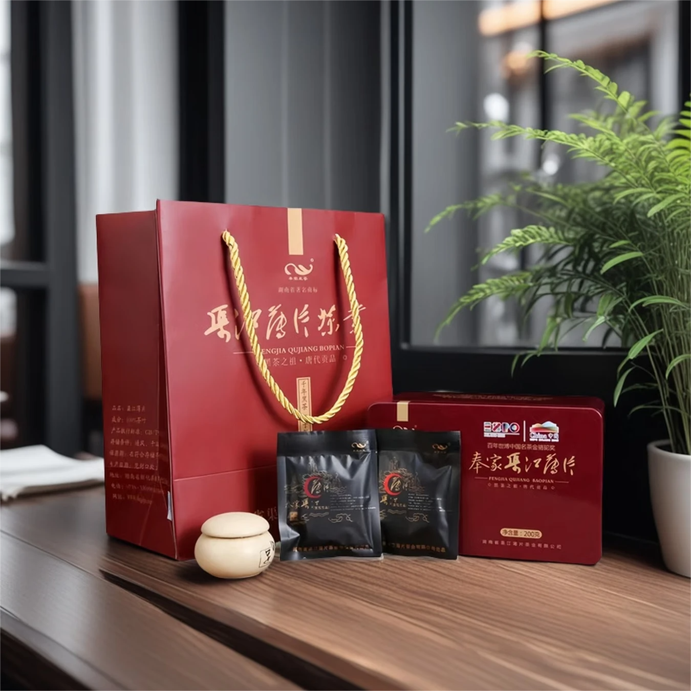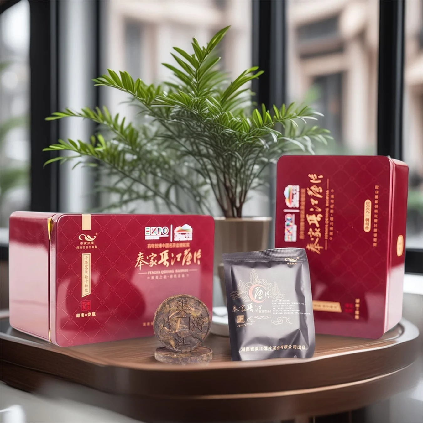 📚 湖南新化奉家古币渠江铁韵渠江薄片黑茶铁盒装200克渠小铁