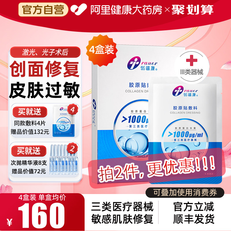 💥种草!揭秘4盒装创福康III类医用修复胶原蛋白无菌敷料,敏感肌冷敷械字号敷料,券后价只需650!