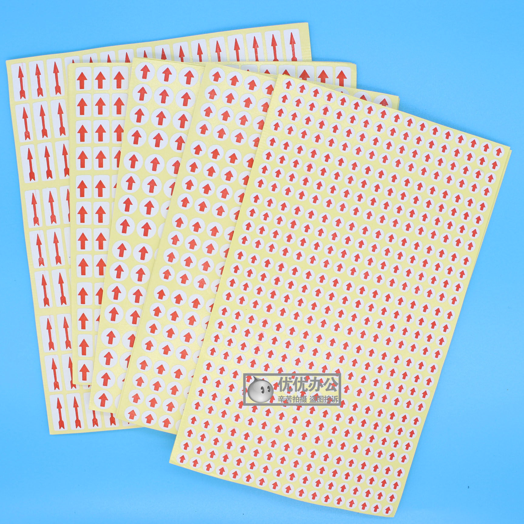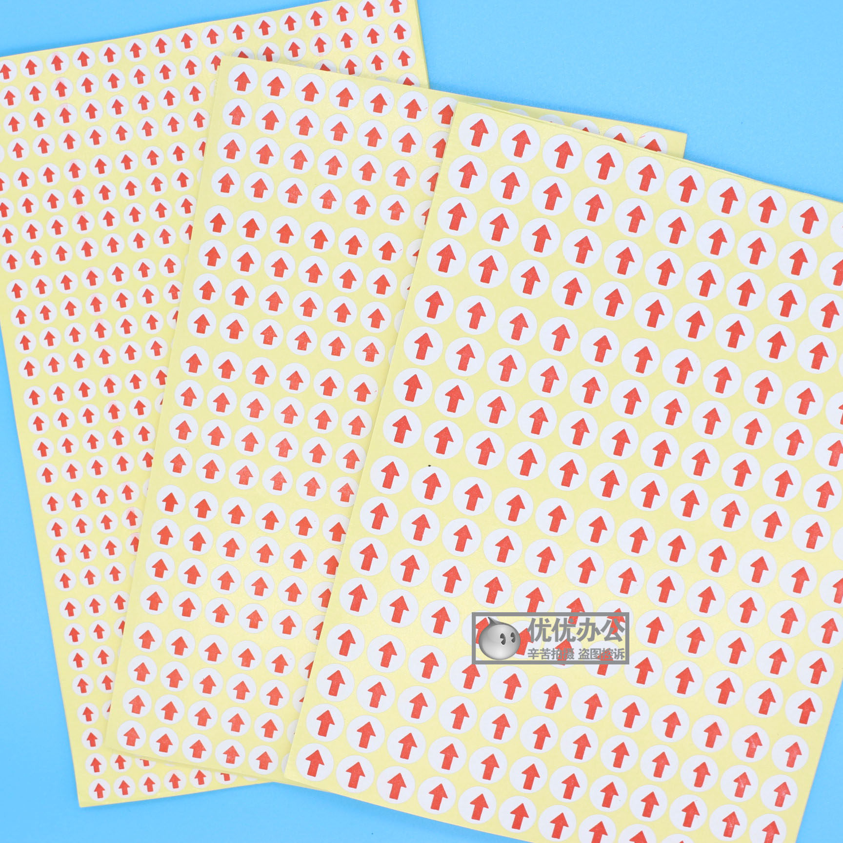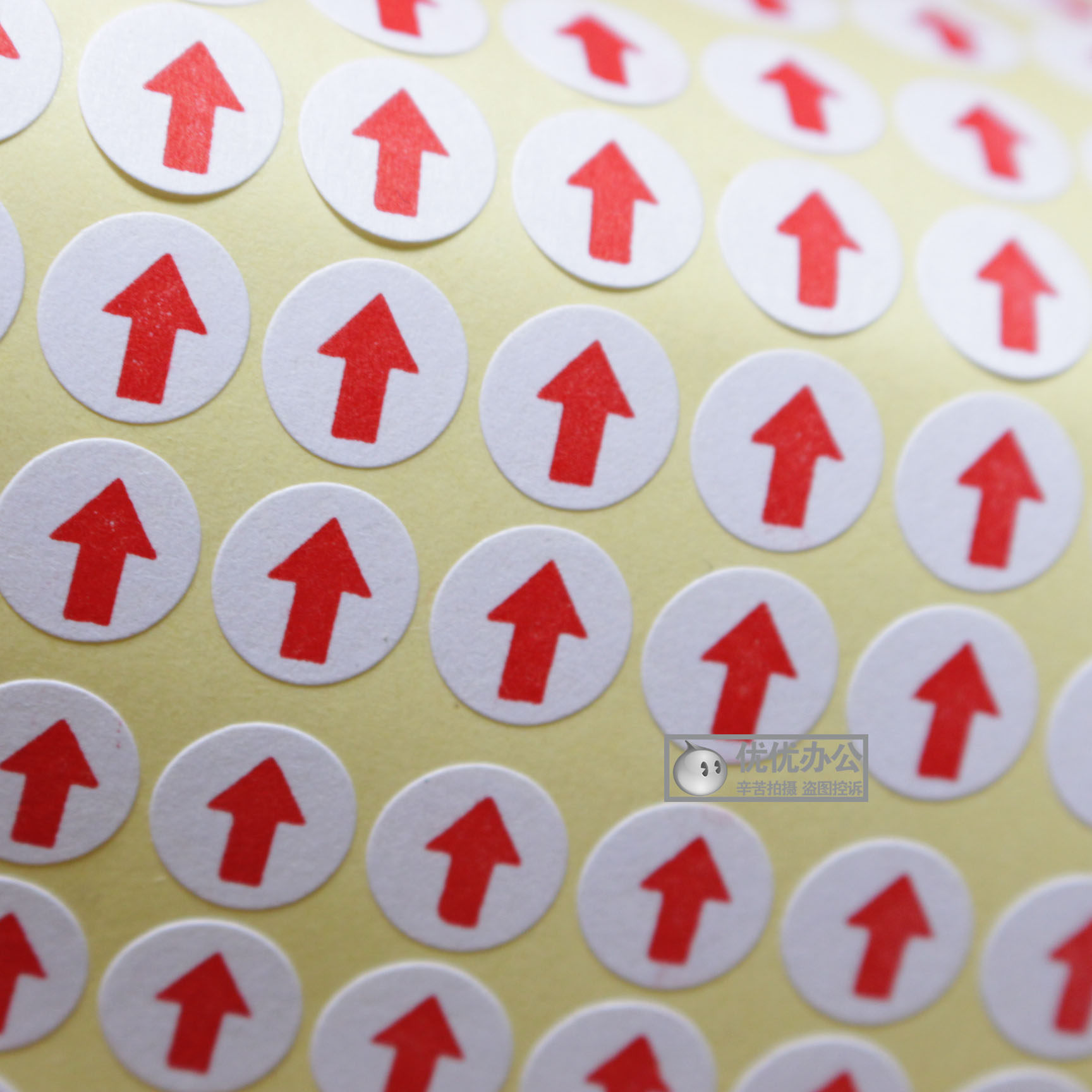 📚 圆形红色小箭头不干胶标签次品不良品不合格返修返工记号向上贴纸