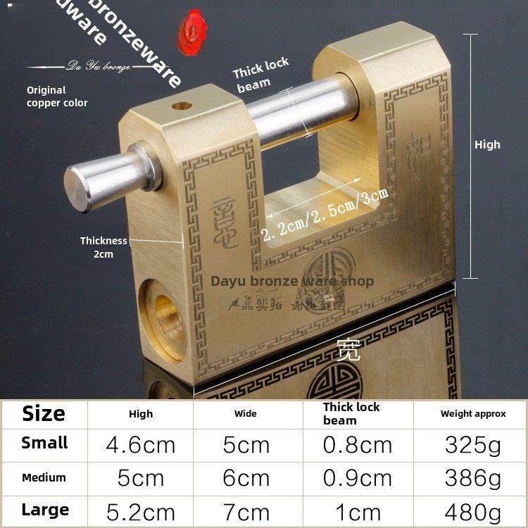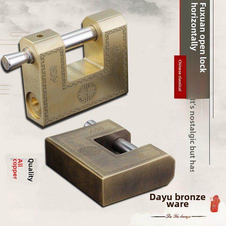 📚 铜锁门锁b级刀片铜锁防撬防水防锈中国风铜锁铁门锁水平开口